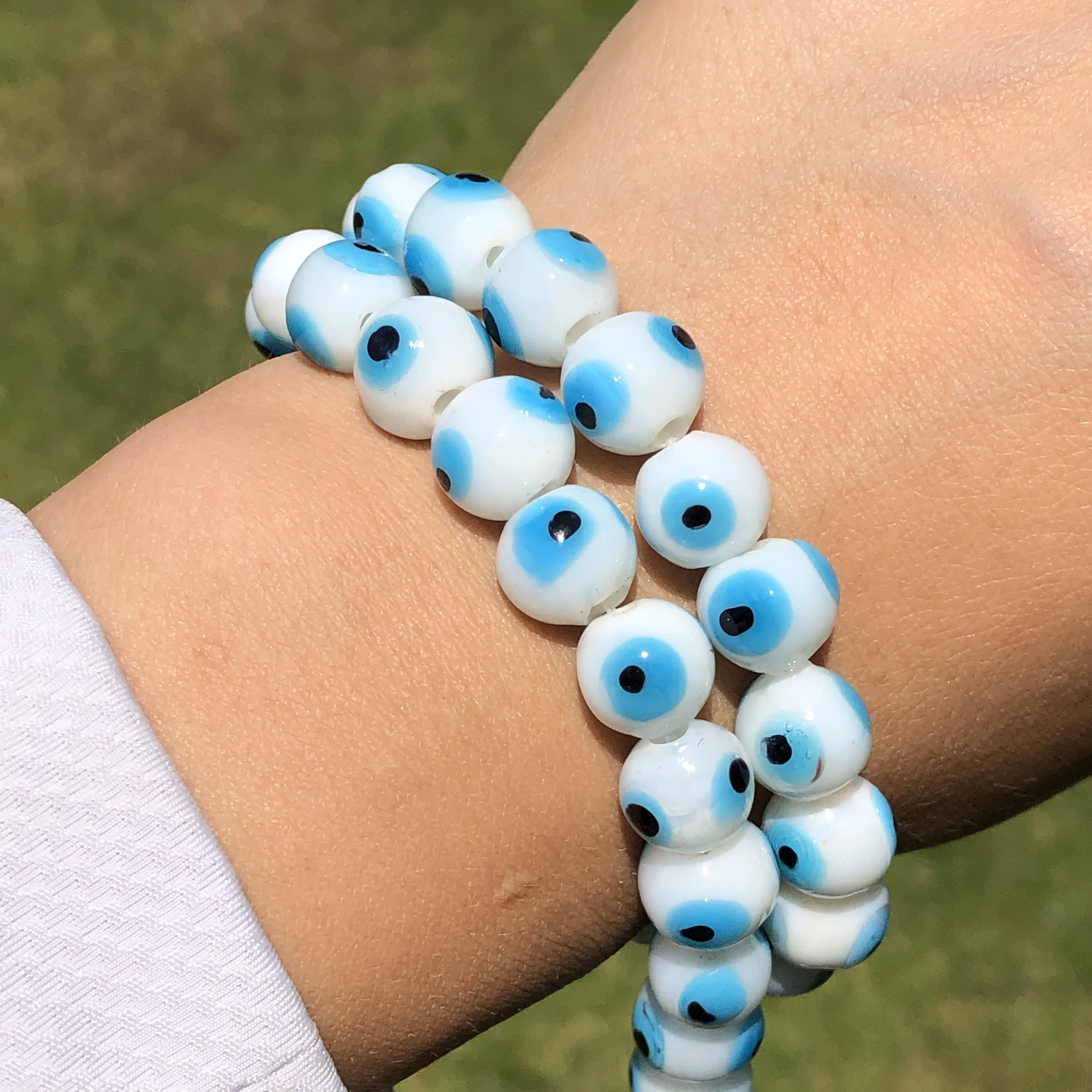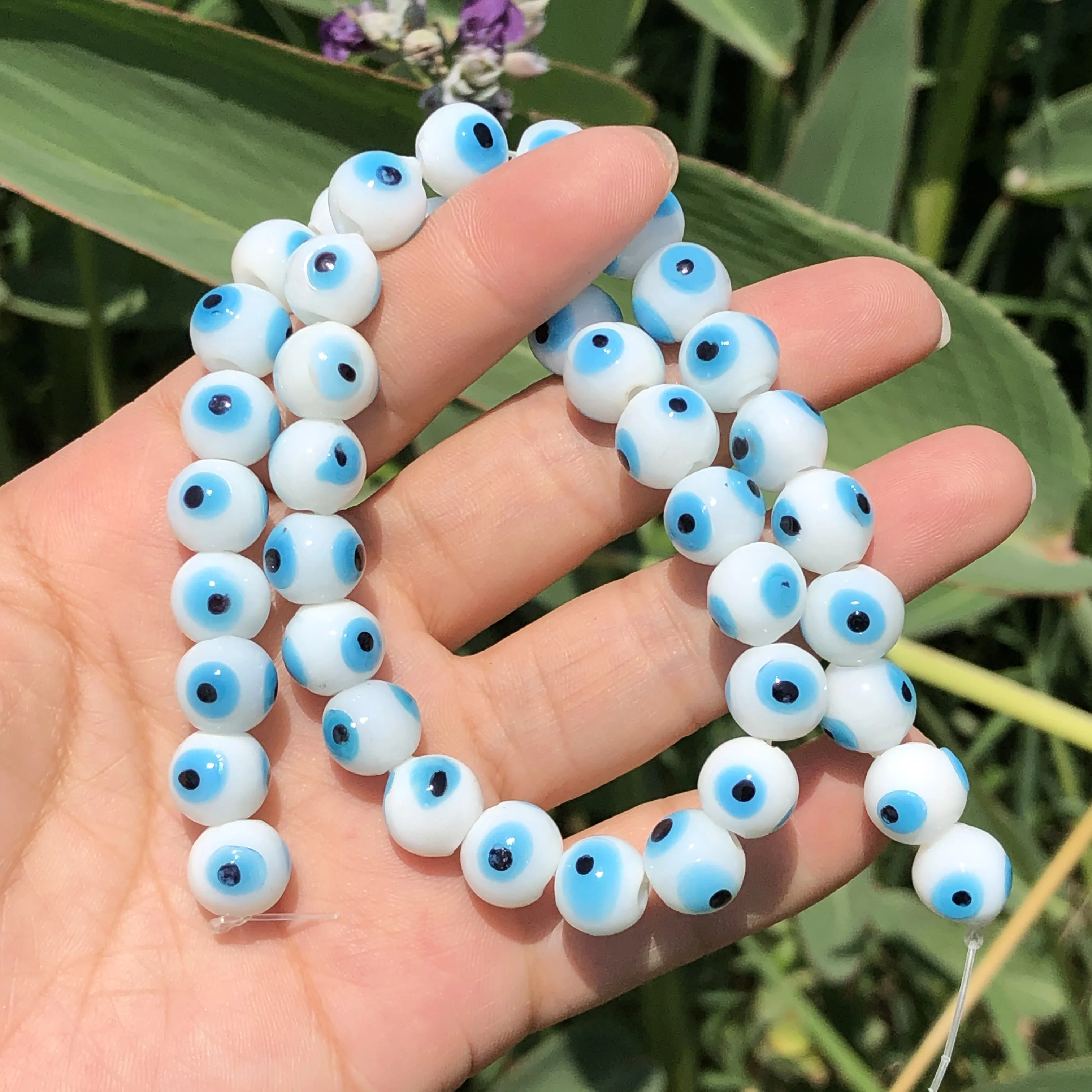 Белые бусины муранское бисерами из окрашенным стекла, голубой, Дурной глаз с двойным остеклением стекла 46810 мм круглые бусины для изготовления ювелирных изделий Diy аксессуары для браслетов и ожерелий 15"