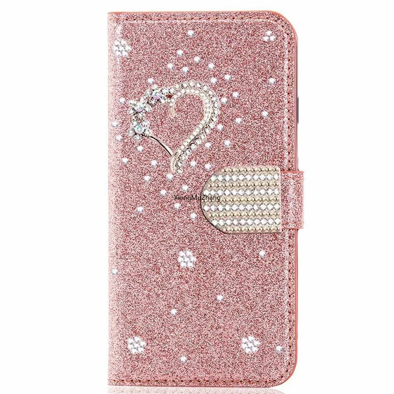 Кожаный чехол-книжка с блестками для iPhone 11 Pro 12 13 MINI X XR ...