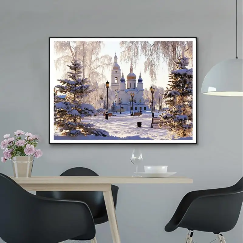 Алмазная 5D живопись сделай сам, пейзаж, картина с деревом на зиму,...