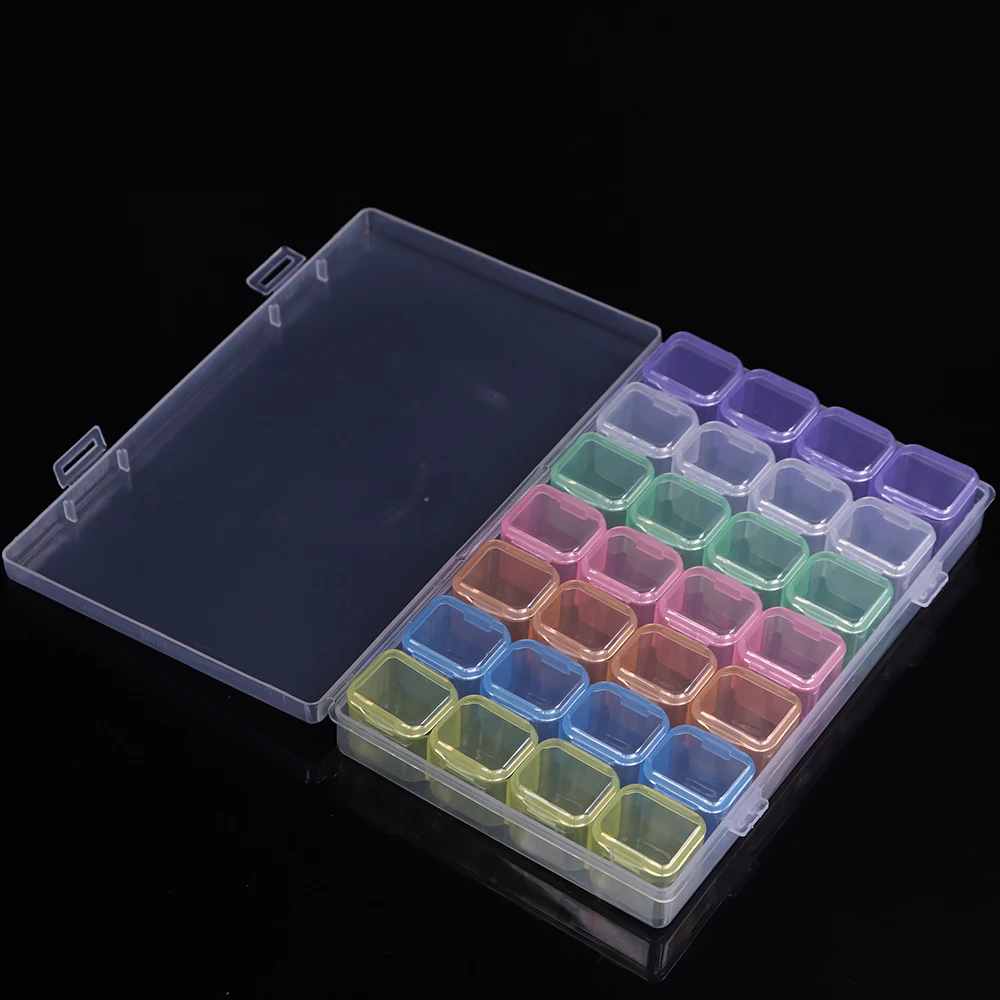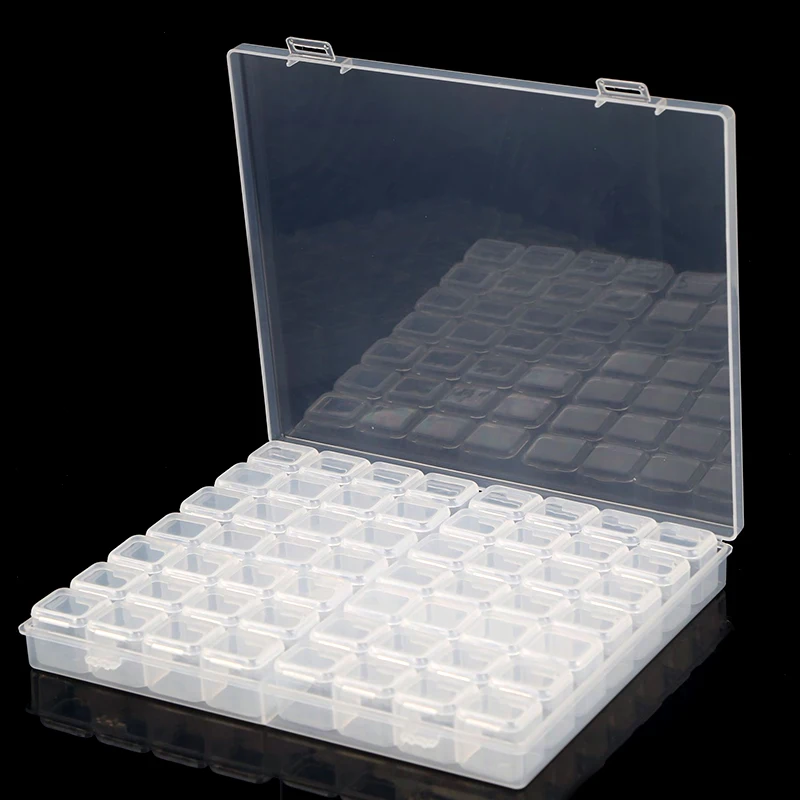 Твердый и портативный ящик для хранения алмазного искусства: Изготовлен из прочного и нетоксичного прозрачного пластика, не легко сломать, вы можете взять его в любом месте, чтобы закончить свою алмазную картину
