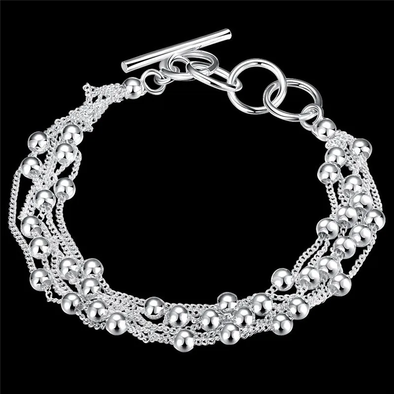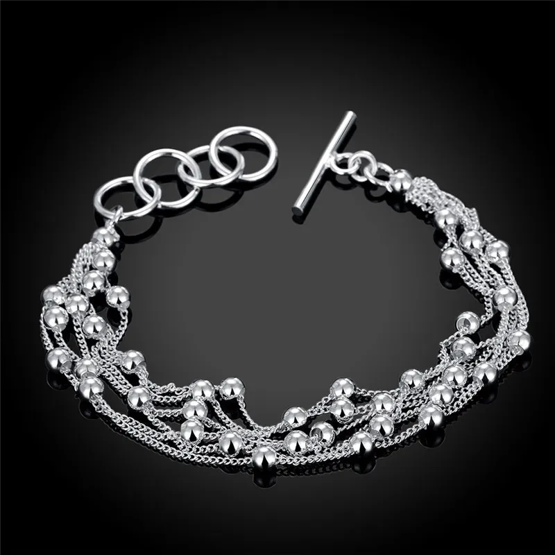 Браслет женский из серебра 925 пробы, многослойный, с круглыми бусинами, 2021