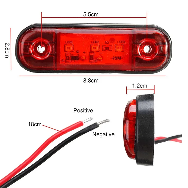 Боковой сигнальный фонарь авто светодиодный Передний габаритный фонарь для прицепа грузовика автобуса Желтый Белый Красный Светодиодный Боковой индикатор автомобильные аксессуары, 10 шт.