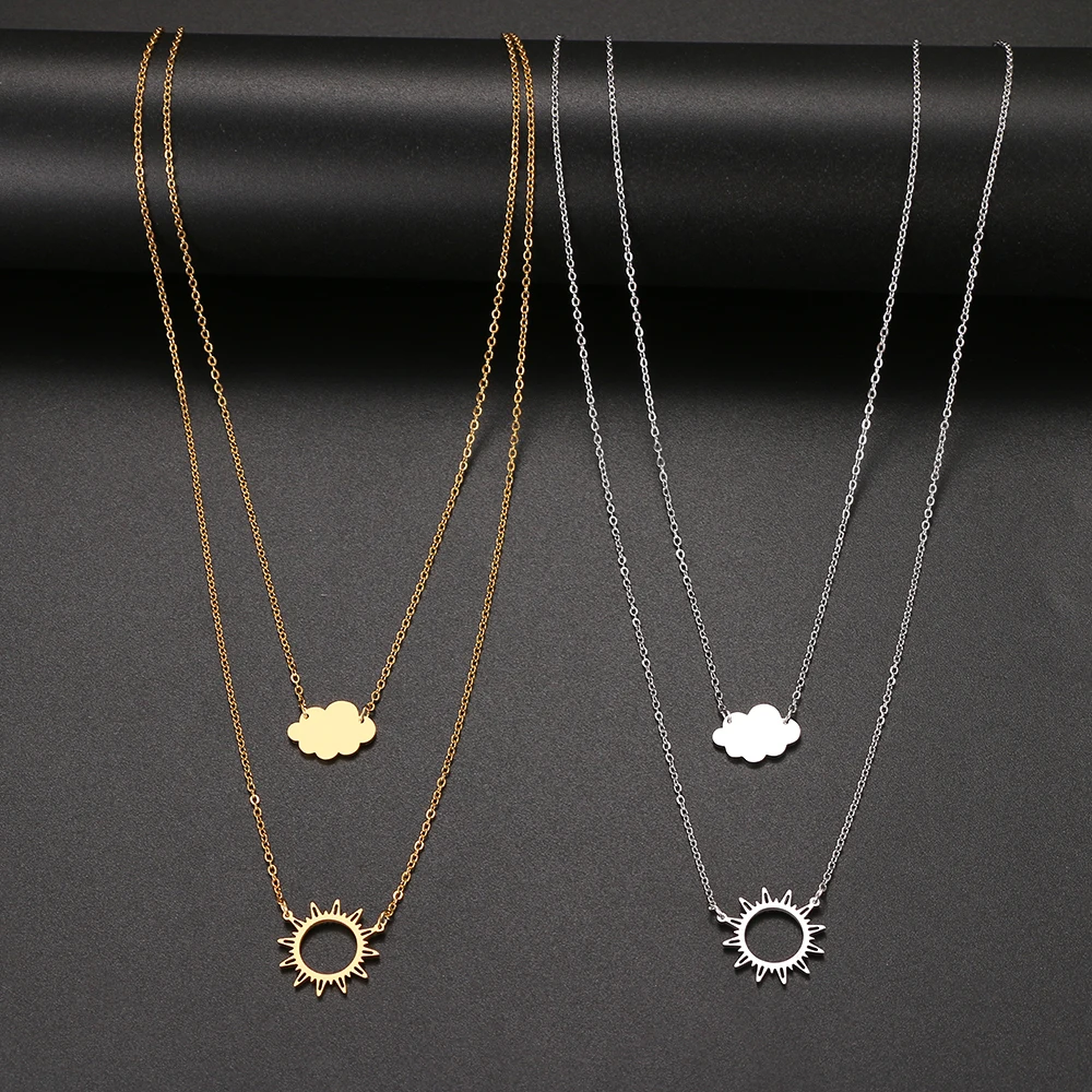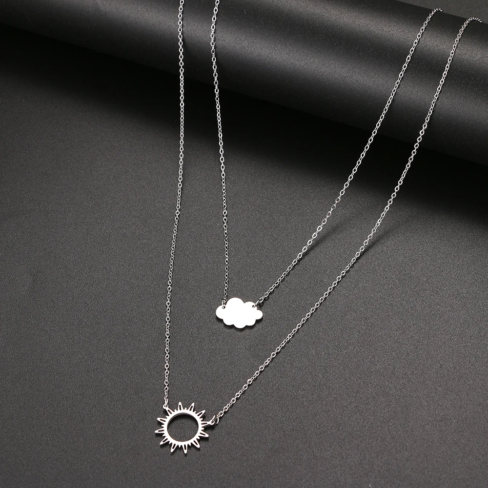 Многослойные модели из нержавеющей стали 2022, ожерелье с подсолнухами и облаками для женщин, модная Изысканная цепочка с подвеской, ювелирные изделия для вечевечерние НКИ, друзей