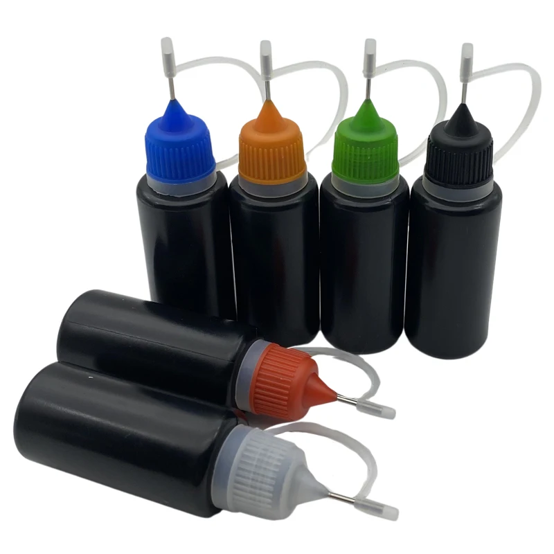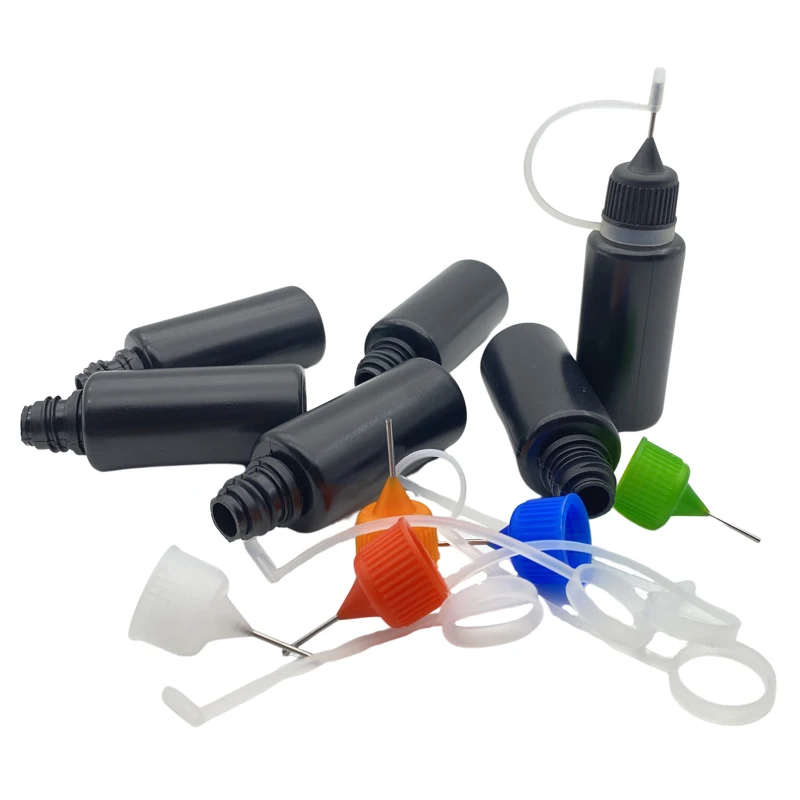 15 мл Черные Пластиковые Бутылки бутылка с металлической иглой пустые флаконы-капельницы с винтом и иглой крышки