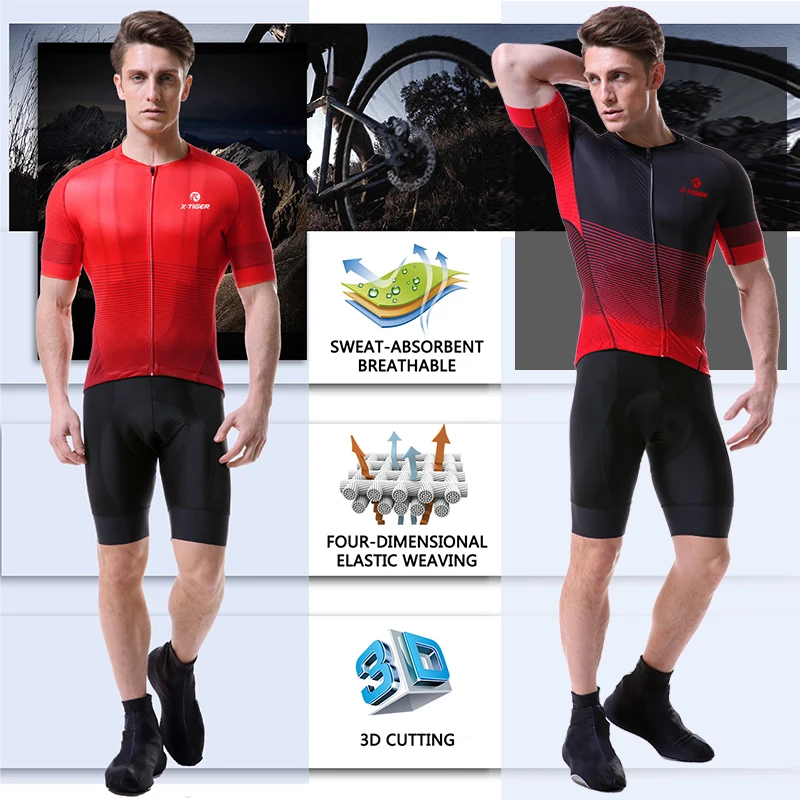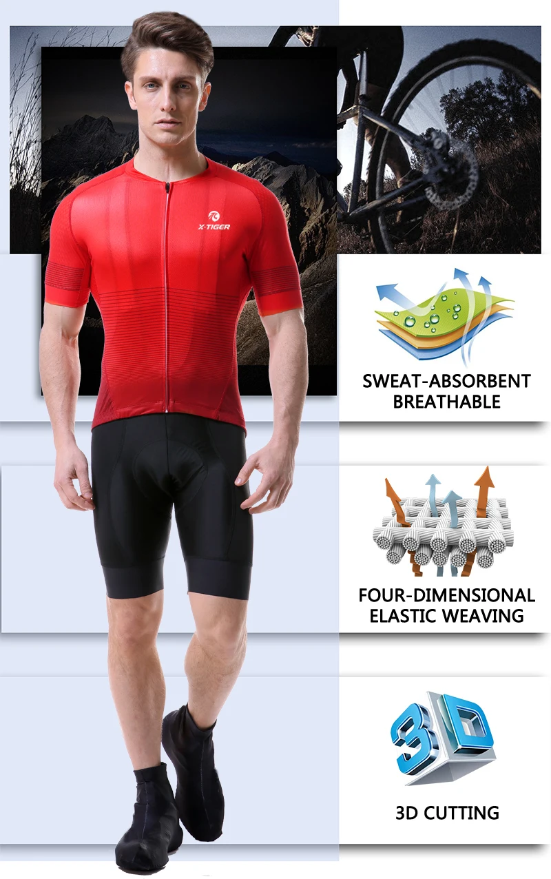 Велосипедный комплект X-Tiger, Мужская Профессиональная веломайка, шорты, рукав, Униформа, дышащая быстросохнущая велосипедная одежда