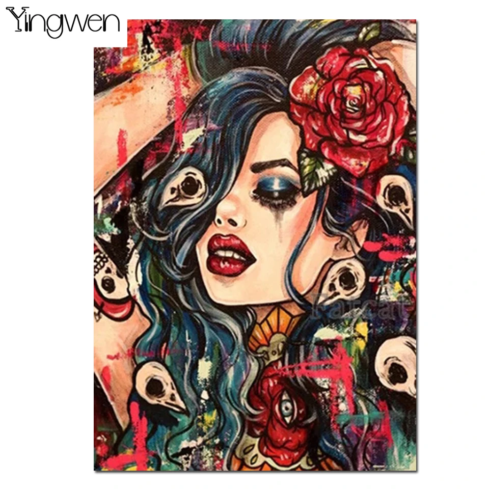 5D Diy Алмазная картина квадратный круглый цветок череп Татуировка Девушка Алмазная вышивка ручной работы Стразы Хэллоуин домашнее искусство подарок