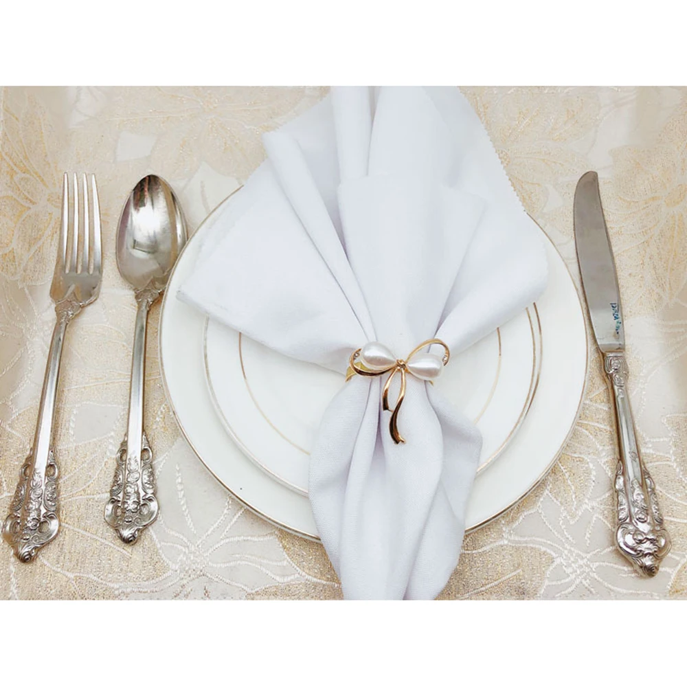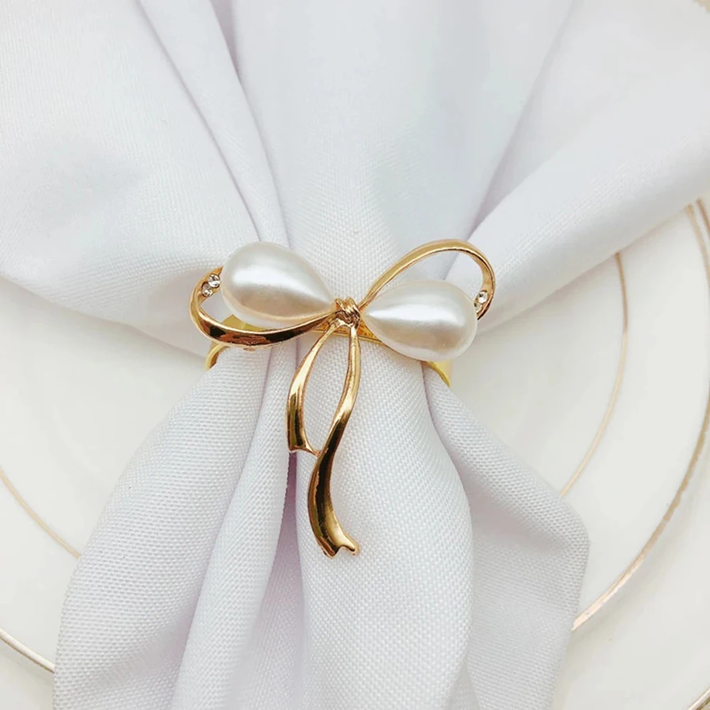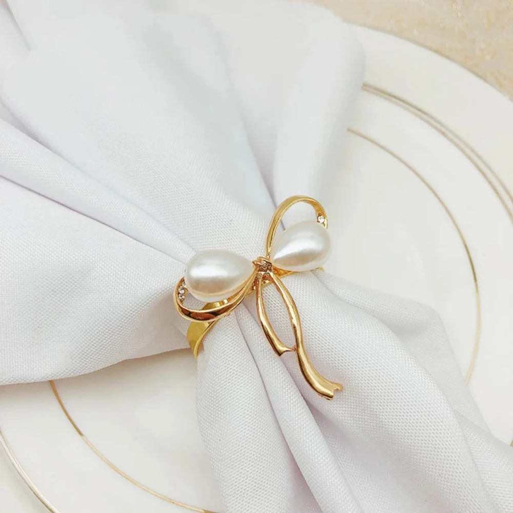 Модное кольцо для свадебных салфеток и украшением из жемчуга и бантов для салфеток с декоративной металлической пряжкой и покрытие кольца для салфеток праздничные вечерние настольное украшение