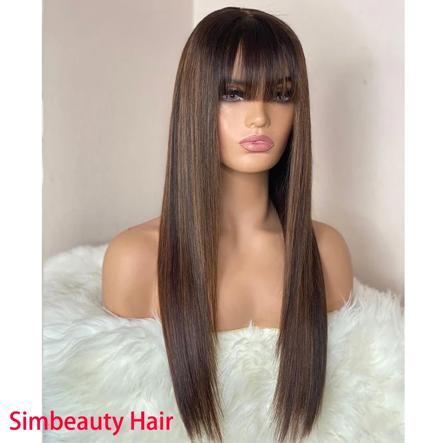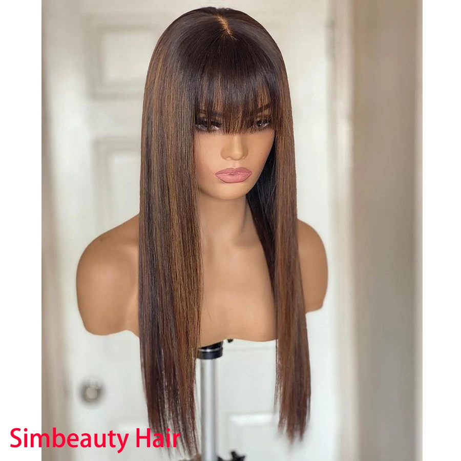 Шелковистые прямые бразильские прямые коричневые корни 13x6 парики из натуральных волос с челкой без клея парики с бахромой Реми