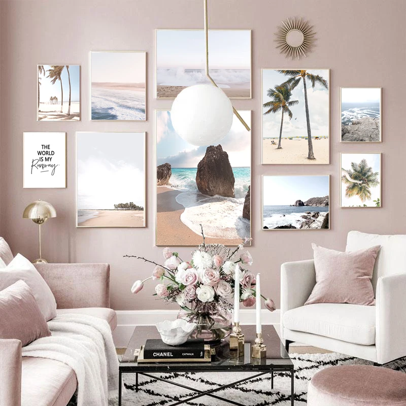 Природный розовый стиль пейзаж планшетофон для пляжа Пейзаж Настенн...