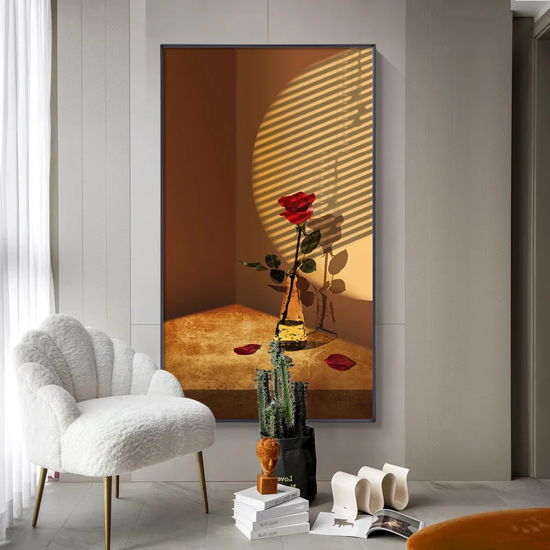 Простой и современный скандинавский оранжевый светильник и тени розы цветы восстанавливают древние пути Искусство Плакат крыльцо роспись Декоративная картина