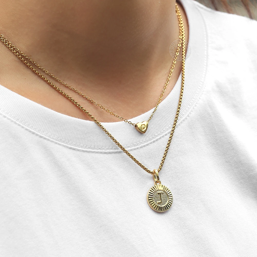 2 шт.компл. ожерелье с круглой подвеской в форме сердца для женщин и мужчин в коробке Rolo из нержавеющей стали колье ювелирные изделия LKN657GP418