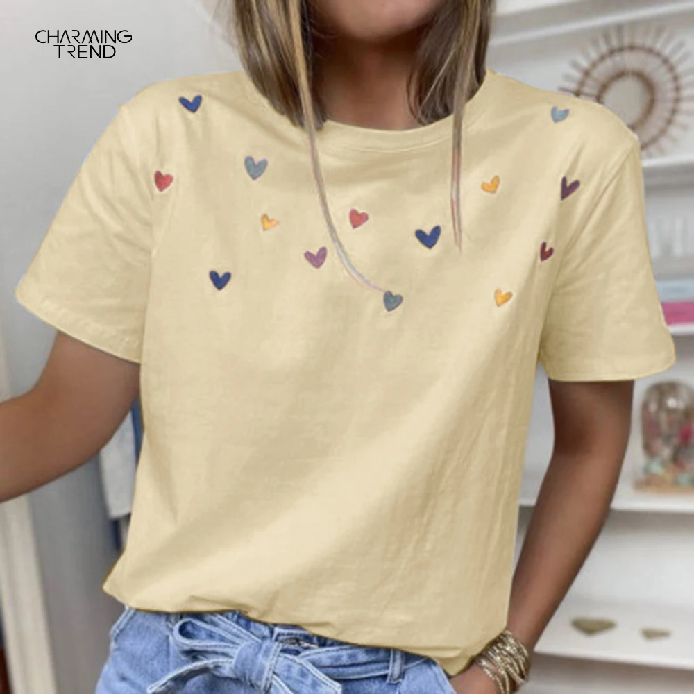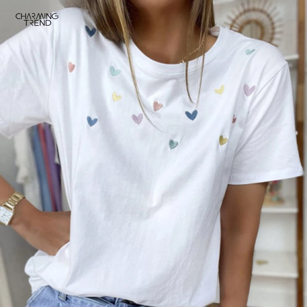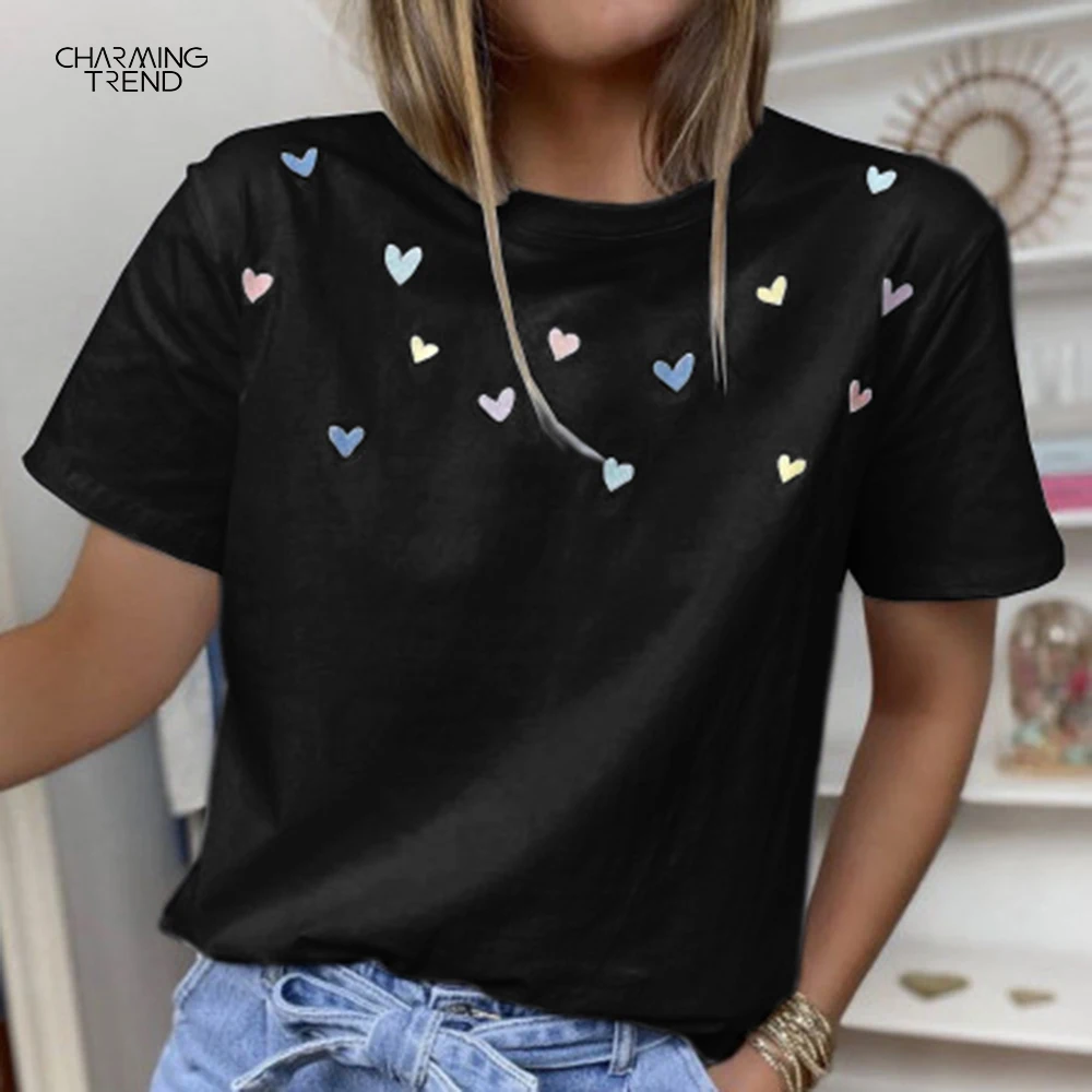 Женская футболка оверсайз с круглым вырезом, коротким рукавом
