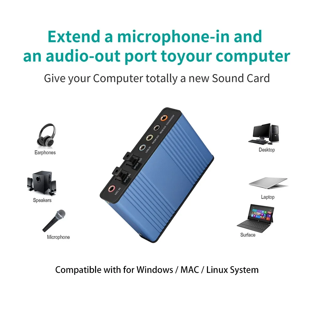 Новый Внешний 6 Каналы 5,1 аудио USB оптическая Звуковая карта адаптер для портативных компьютеров
