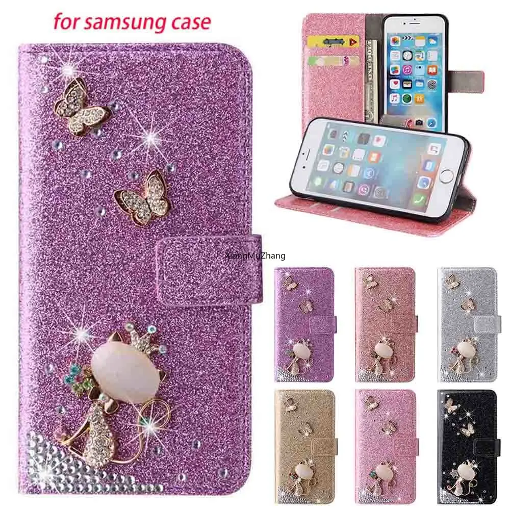 Роскошный блестящий чехол со стразами для Samsung A32, A52, A72, A12, A02S, A750, J3, J5, J7 2016, откидной кожаный чехол со стразами и отделением для карт
