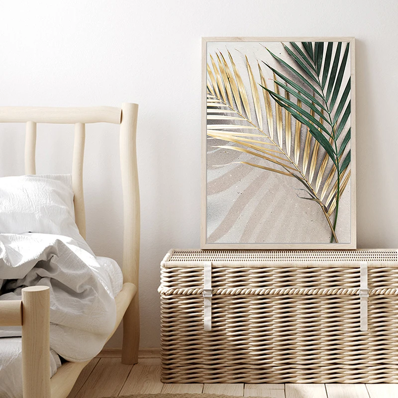 Скандинавская Настенная картина с золотыми пальмовыми листьями растений, скандинавский холст, фотография для комнаты, спальни, украшение для дома