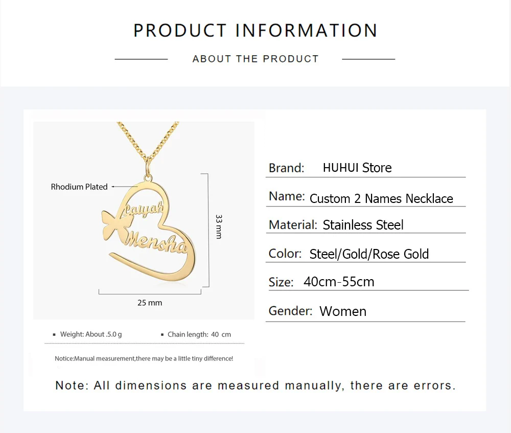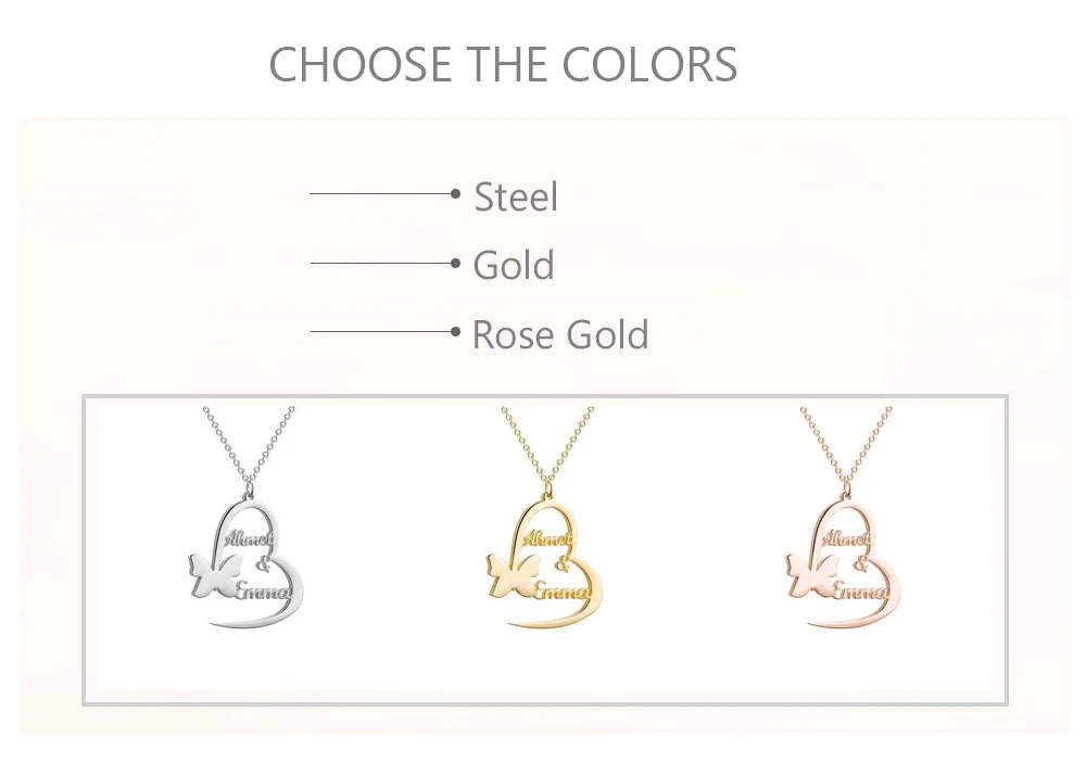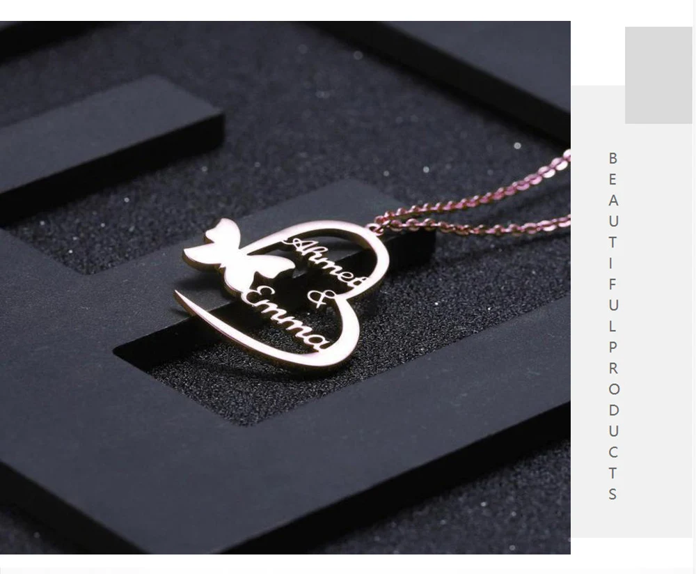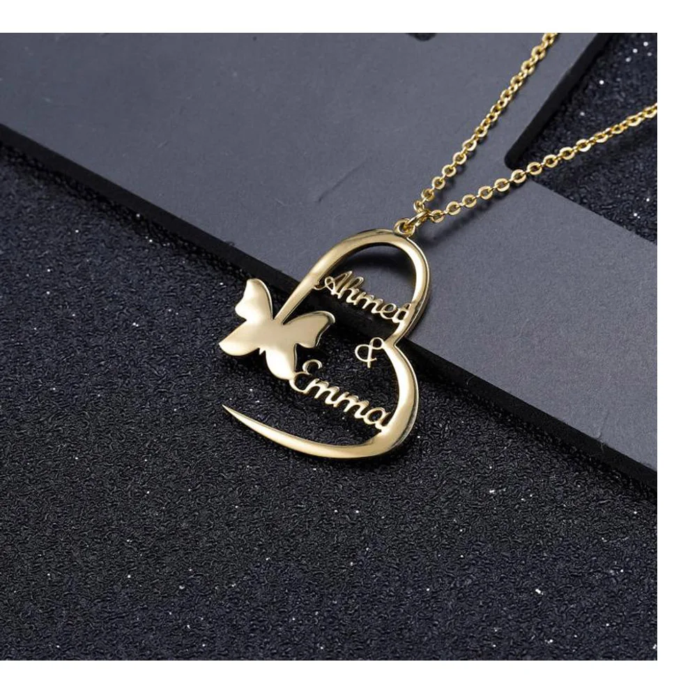 Индивидуальное ожерелье с двойным именем бабочки, женское ожерелье ...