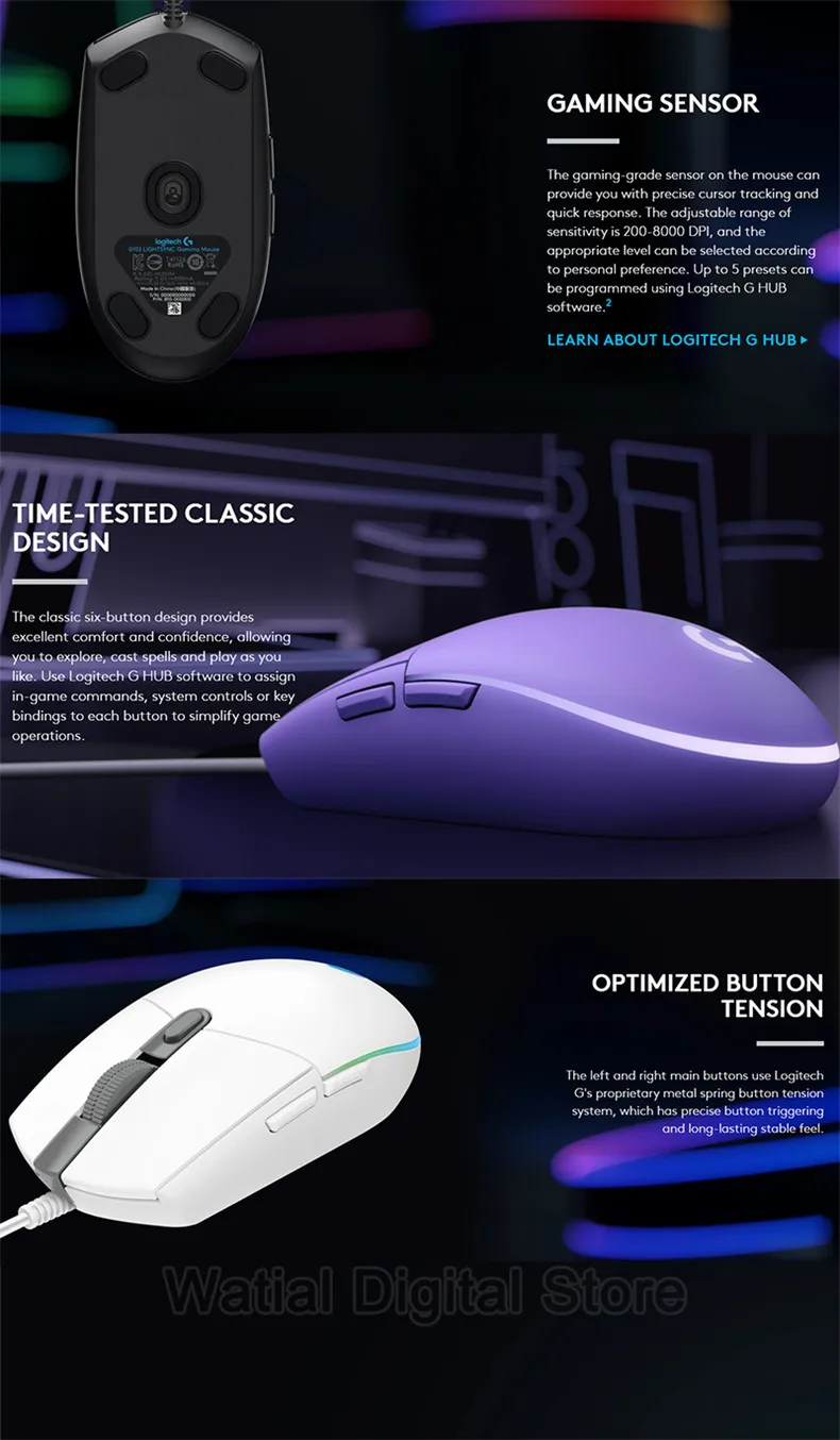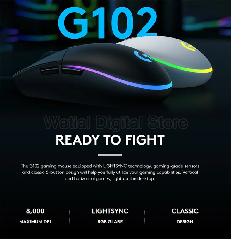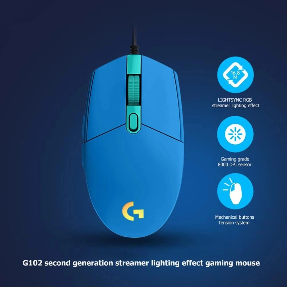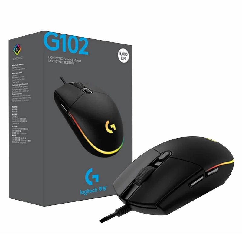 Игровая мышь Logitech G102 Lightsync, проводная оптическая компьютерная мышь RGB, 8000DPI, 16,8 м, цветная светодиодная подсветка, 6 кнопок, Мыши для ПК, ноутбука, Macbook