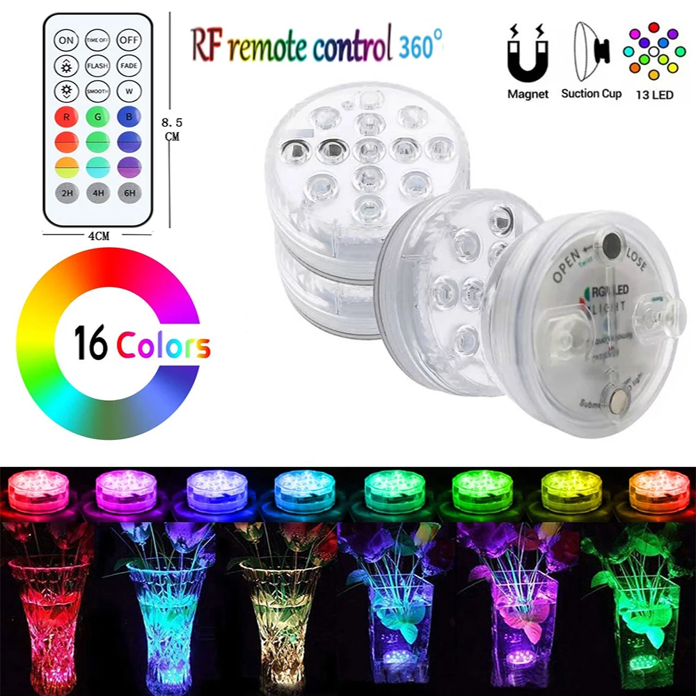 13 светодиодный Дистанционное Управление светодиодный RGB погружной светильник с магнитом и присоска Бассейн светильник подводный светодиодный светильник ночное 2021