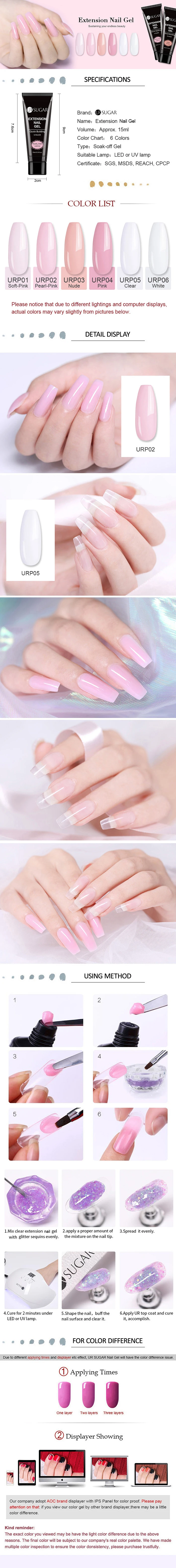 Лаки для наращивания UR SUGAR набор гелей для ногтей, телесные, розовые, быстрый набор для маникюра