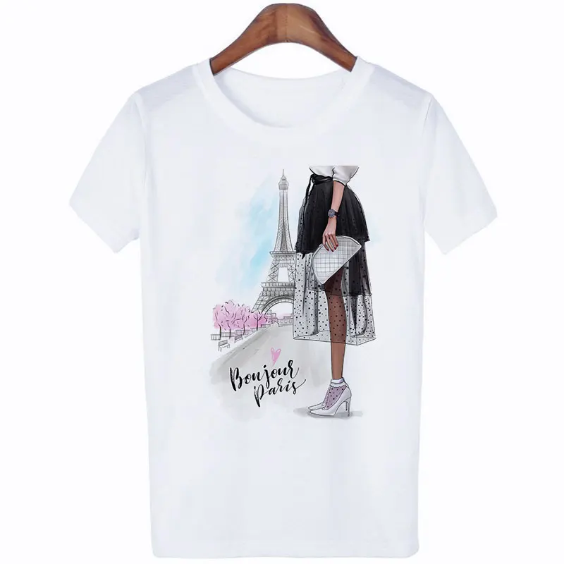 Летняя футболка женская белая футболка с круглым вырезом футболки, ...