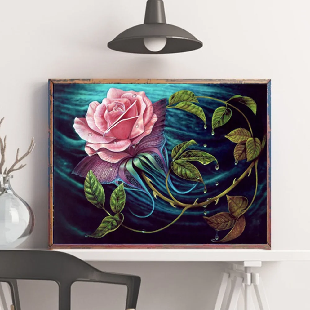 Алмазная живопись, узор розовая роза, декоративная картина, стразы,...