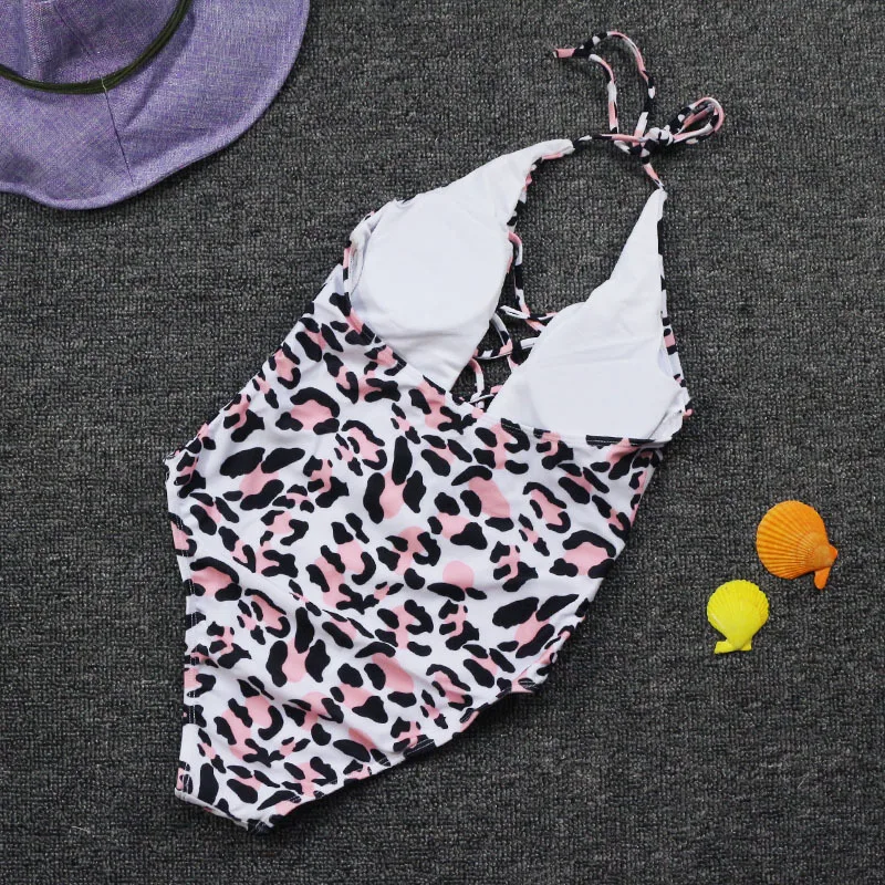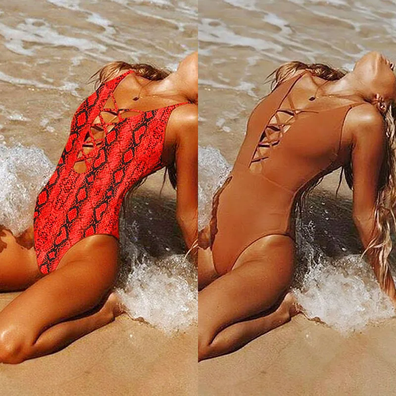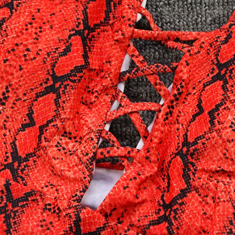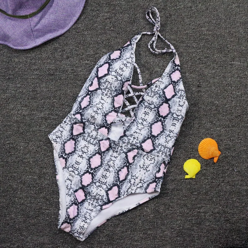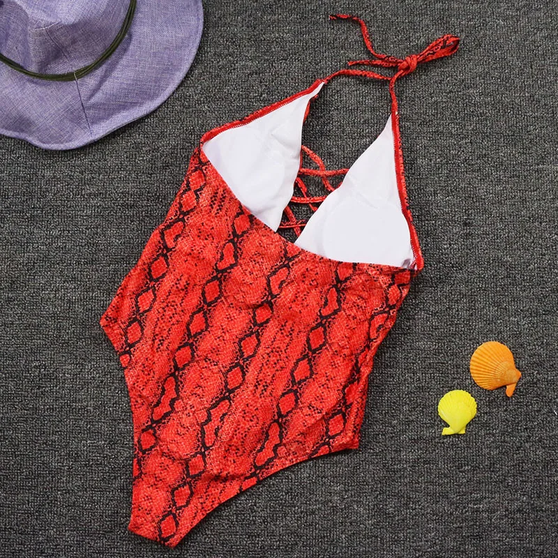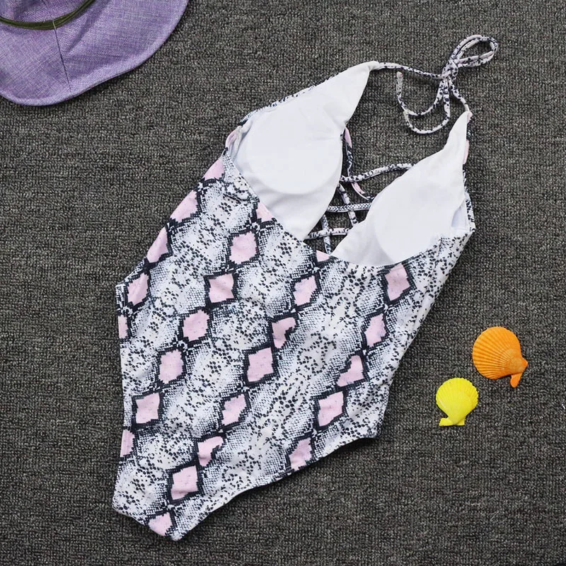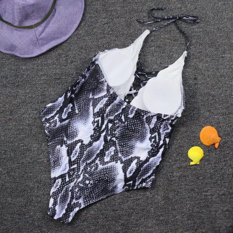 Женский сплошной купальник с эффектом пуш-ап, глубоким V-образным вырезом и змеиным принтом
