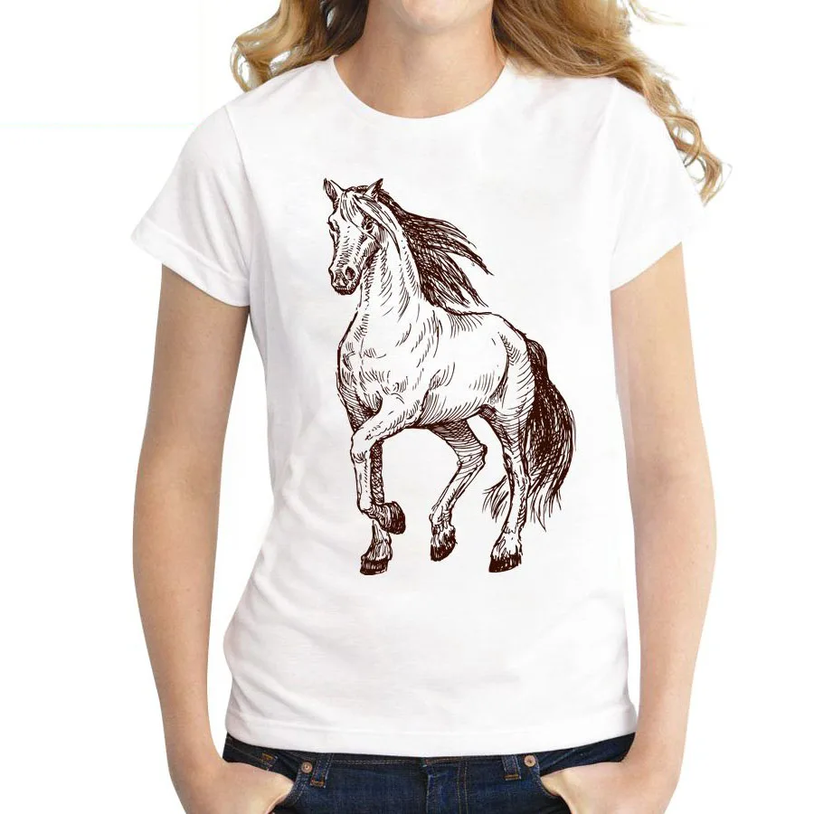 Женская футболка с коротким рукавом, круглым вырезом и принтом лошади