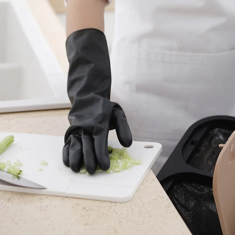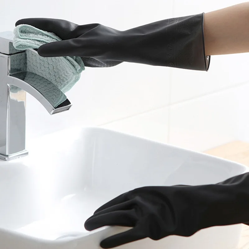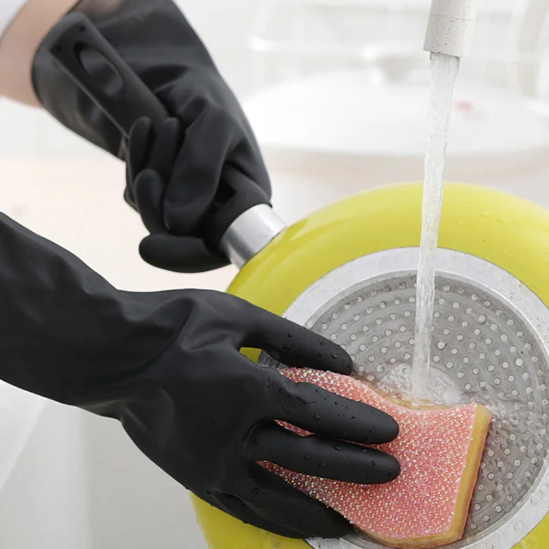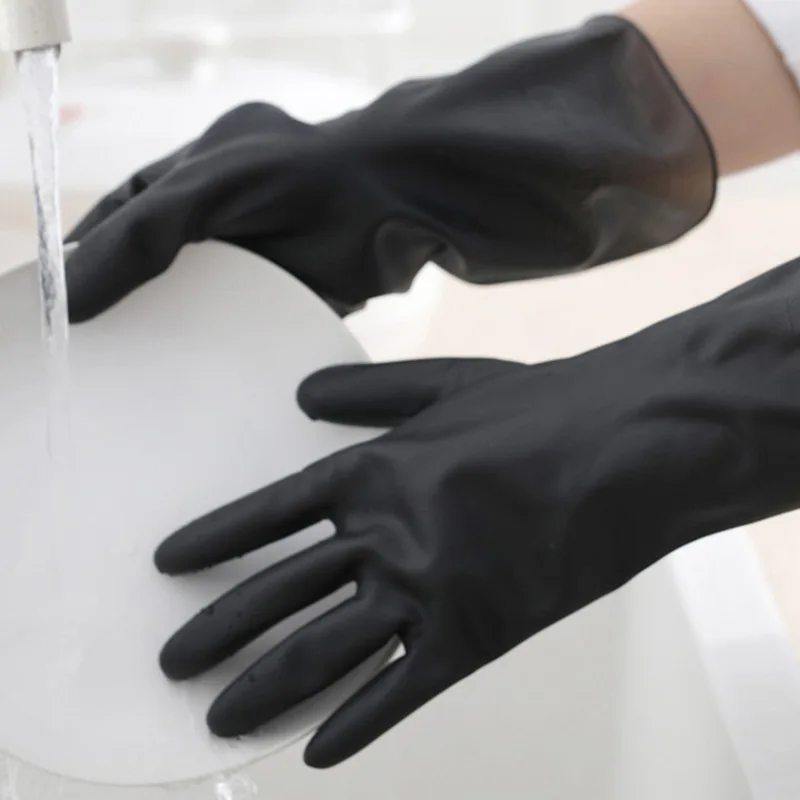 Кухонные прочные водонепроницаемые резиновые перчатки из ПВХ, черны...