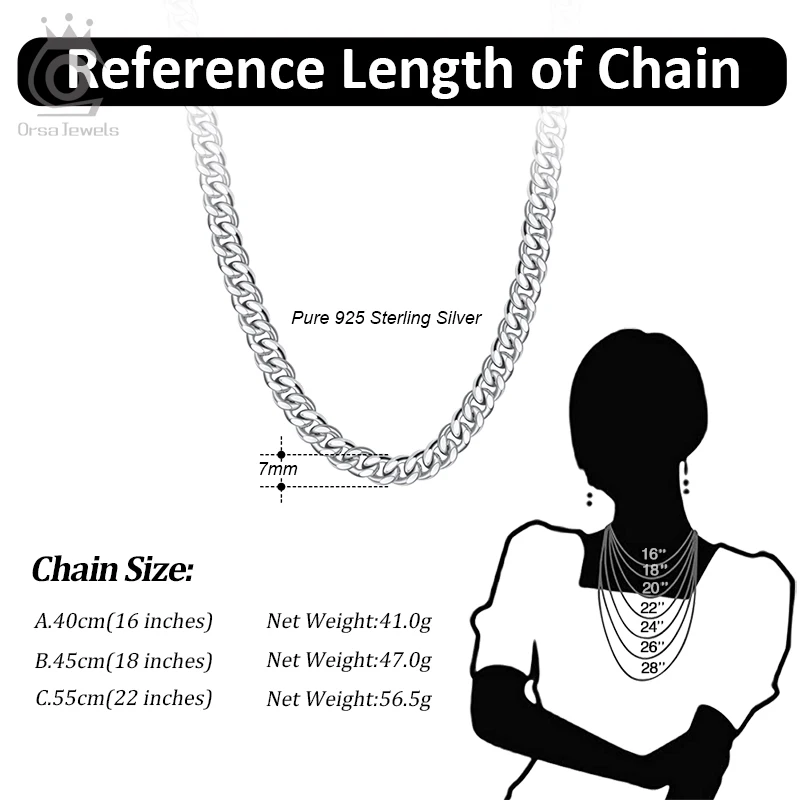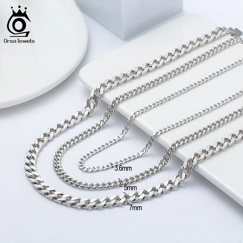 ORSA JEWELS, серебро 925 пробы, базовое ожерелье в стиле панк для мужчин и женщин, Мужская цепочка с кубинскими звеньями, чокеры, винтажный панк для мальчиков, мужские подарки SC37