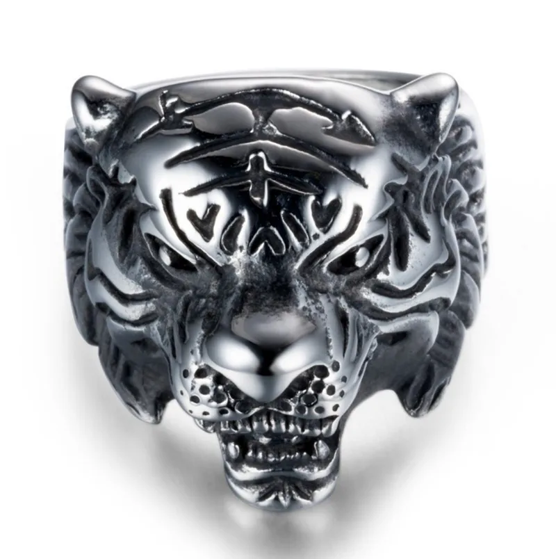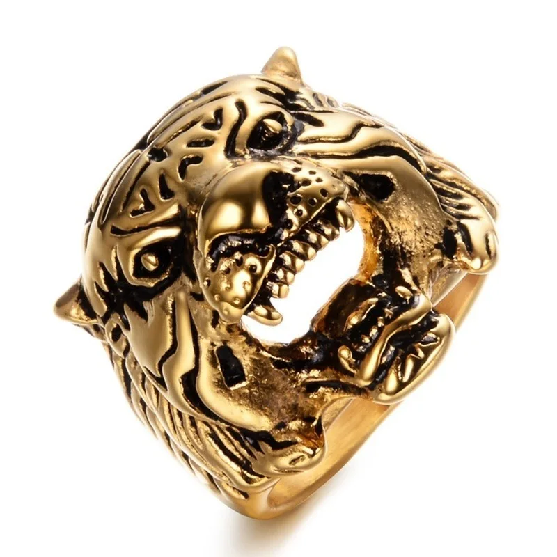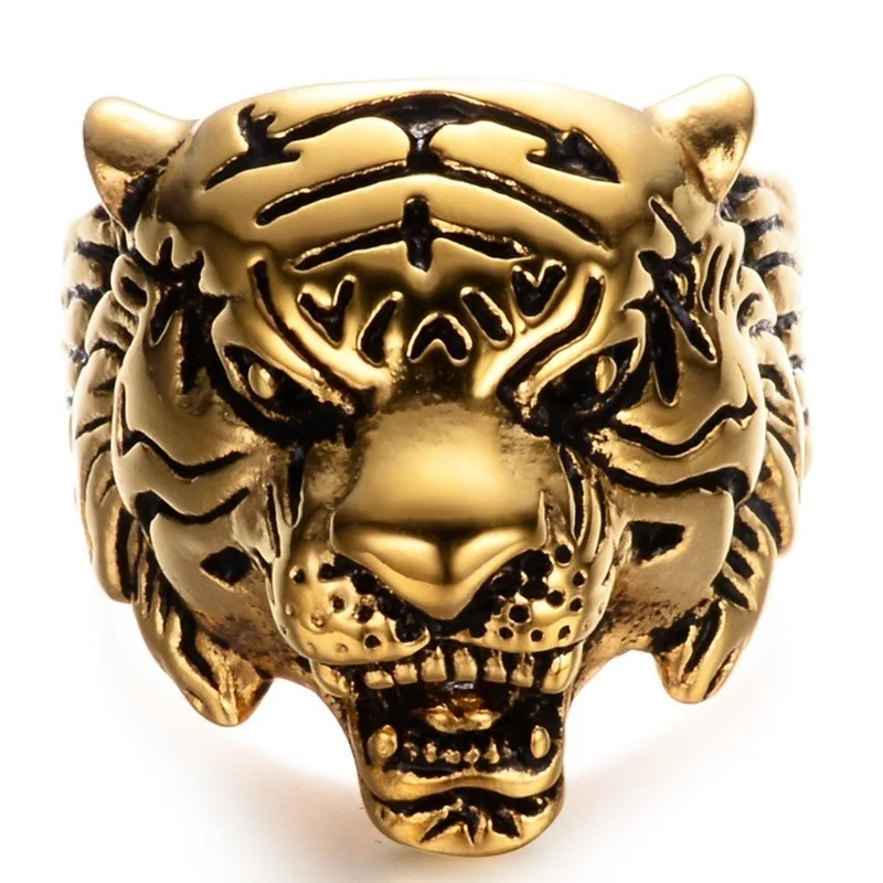 Мужское кольцо с изображением животного, властное, повседневное ювелирное изделие, трехцветное кольцо с головой тигра