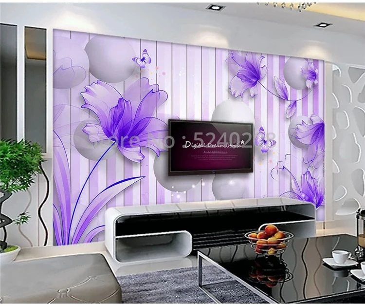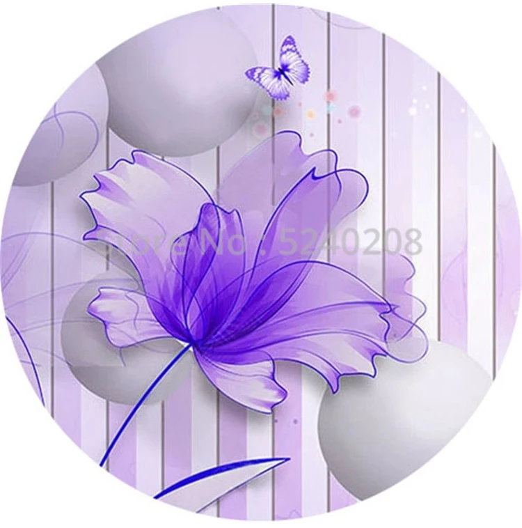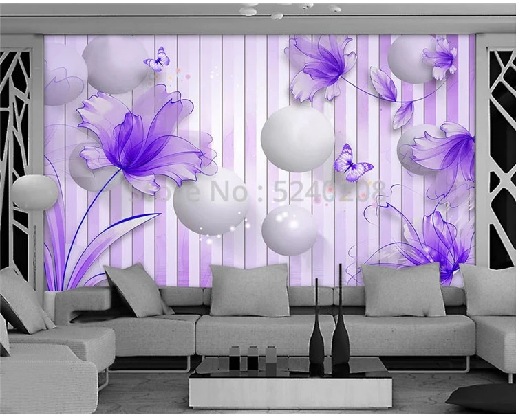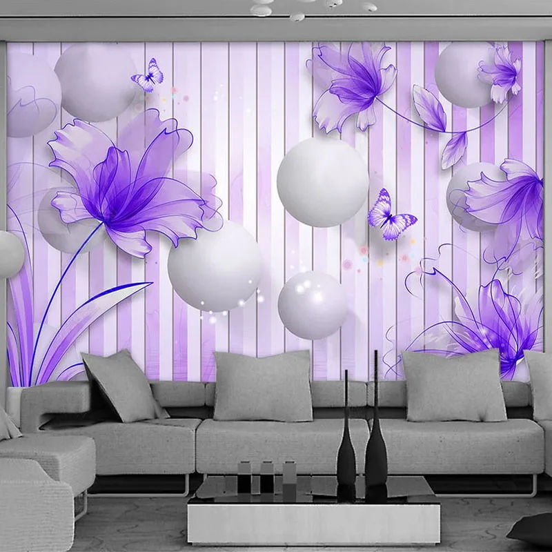 Самоклеящиеся обои на заказ, современные прозрачные цветы с фиолетовыми лилиями, 3D стерео Сфера, модные фоновые настенные 3D наклейки