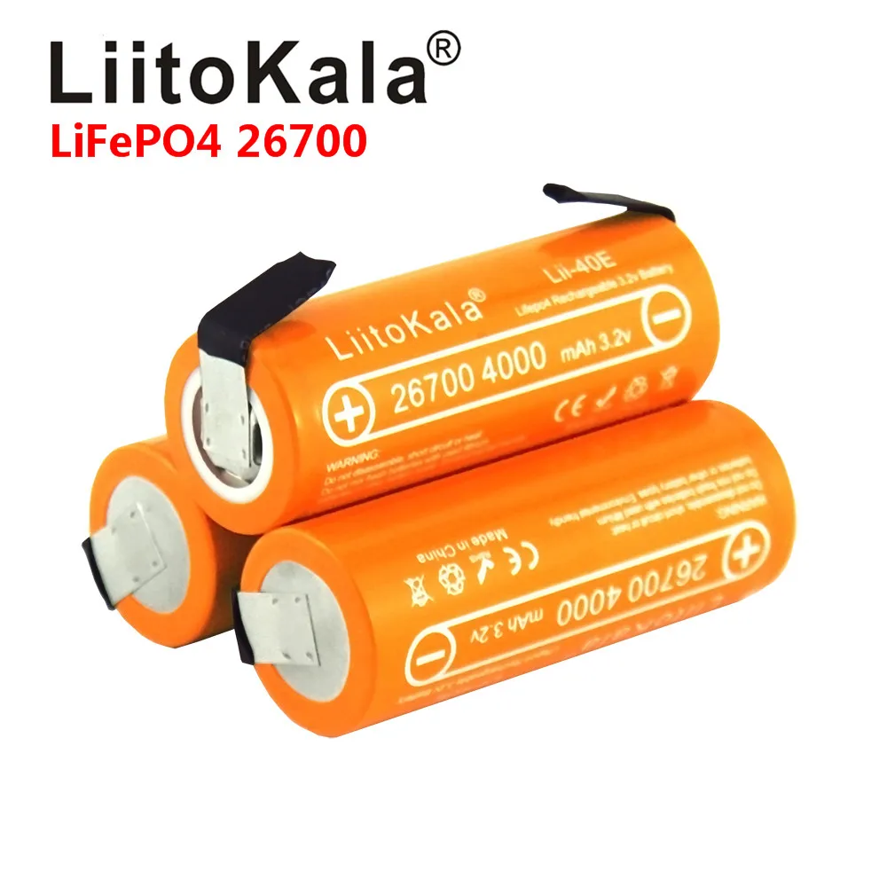 Аккумулятор LiitoKala Lii-40E, 3,2 в, 26700, 4000, для электровелосипеда, никелевые листы для самостоятельной сборки