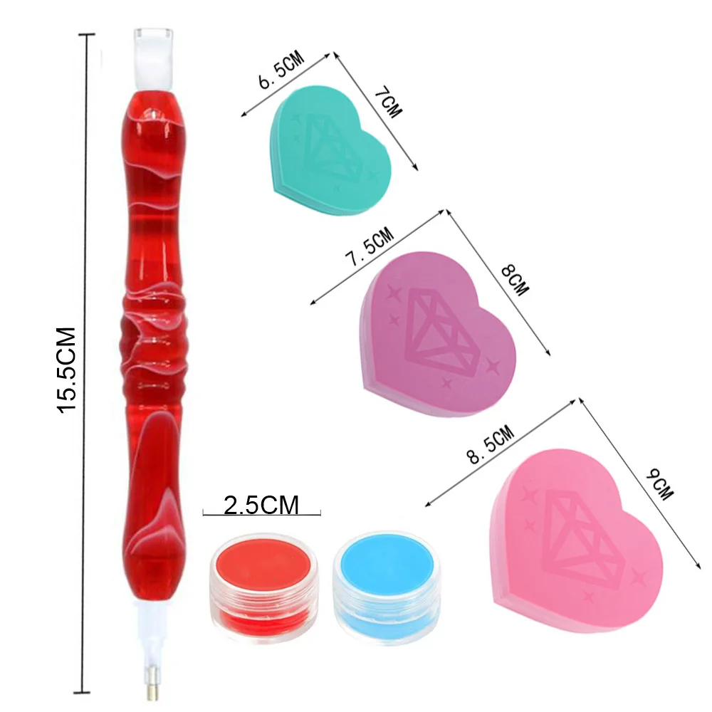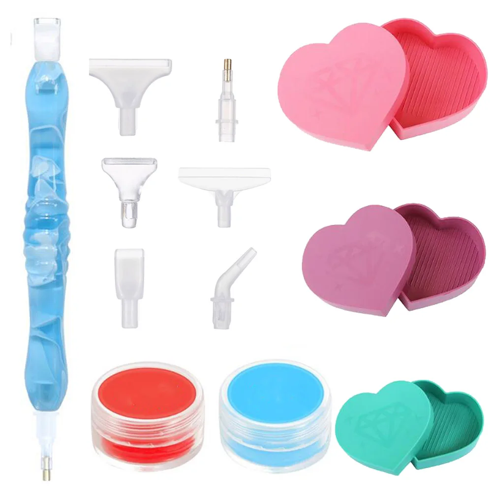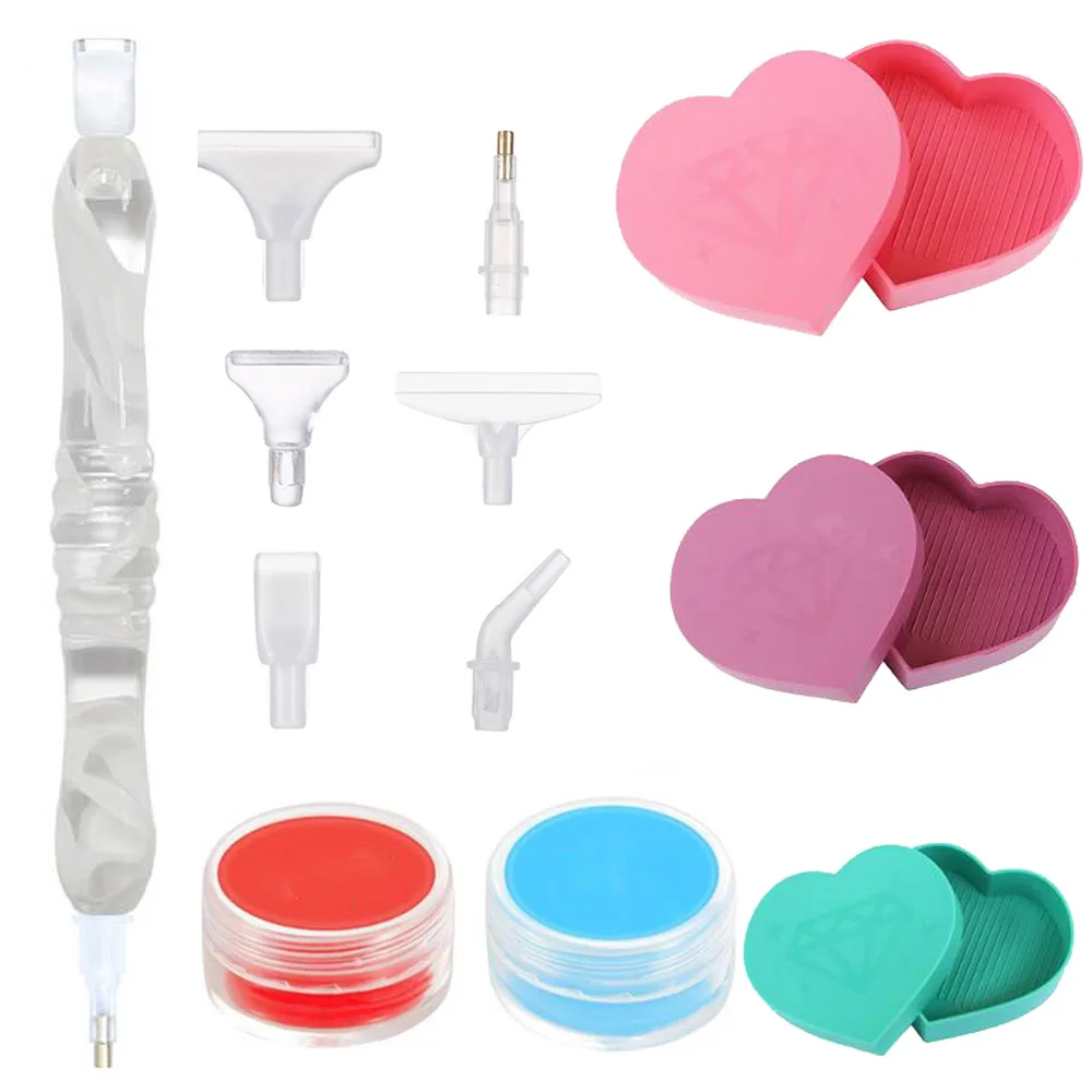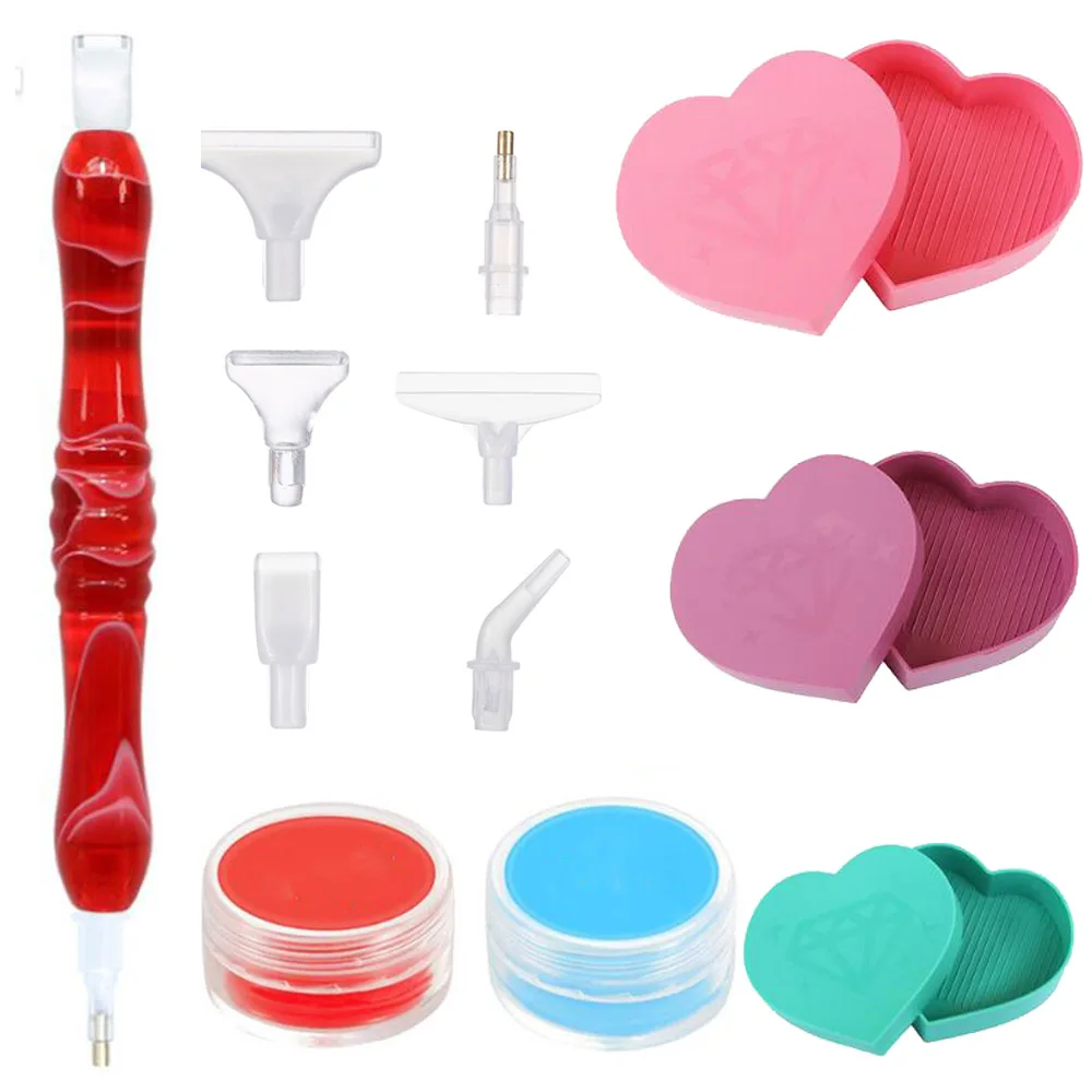 21 шт. 5D Алмазная мозаика инструмент ручной смолы точечной фиксацией ручка в форме сердца со стразами лоток коробка и глины и сменных перьев