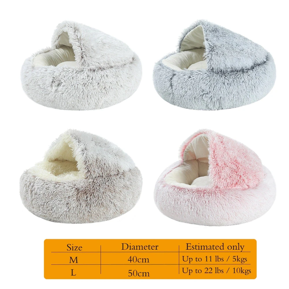 Новые Домашние животные собака кошка круглые плюшевые кровати полузакрытые удобные 2 в 1 кровать диван глубокий Теплый Сон зимой подушка гнездо для маленьких домашних животныхОсобенности: