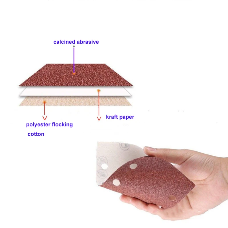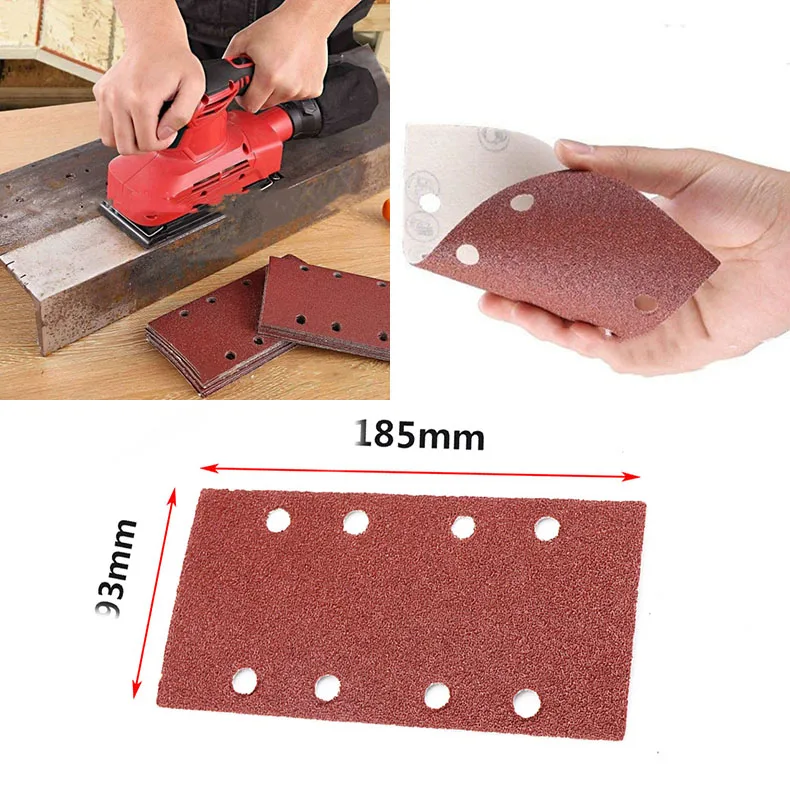 Самоклеящаяся прямоугольная флокирующая наждачная бумага с 8 отверстиями, 20 шт.компл., 9,3x18,5 см, крючок и петля для очистки воздуха, шлифовальный диск