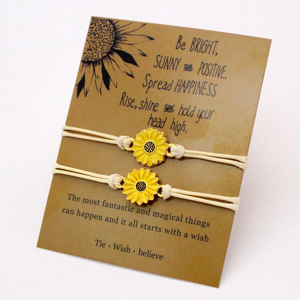 (A SET) подсолнухи маргаритки Браслеты Регулируемый веревочный браслет для женщин девочек унисекс модные ювелирные изделия Прямая поставка