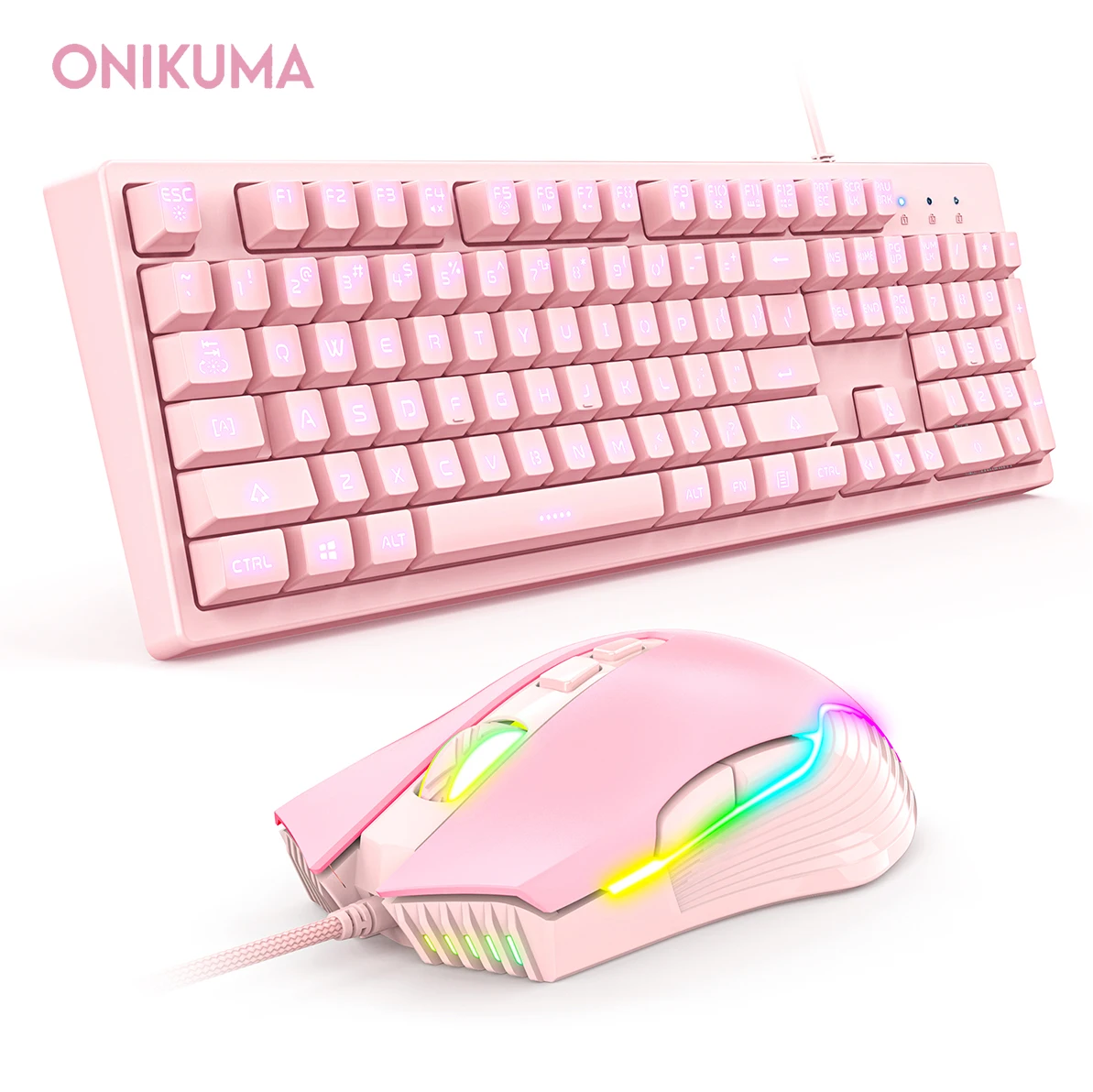 Проводная игровая клавиатура и мышь ONIKUMA G25, розовая, CW905, 64...