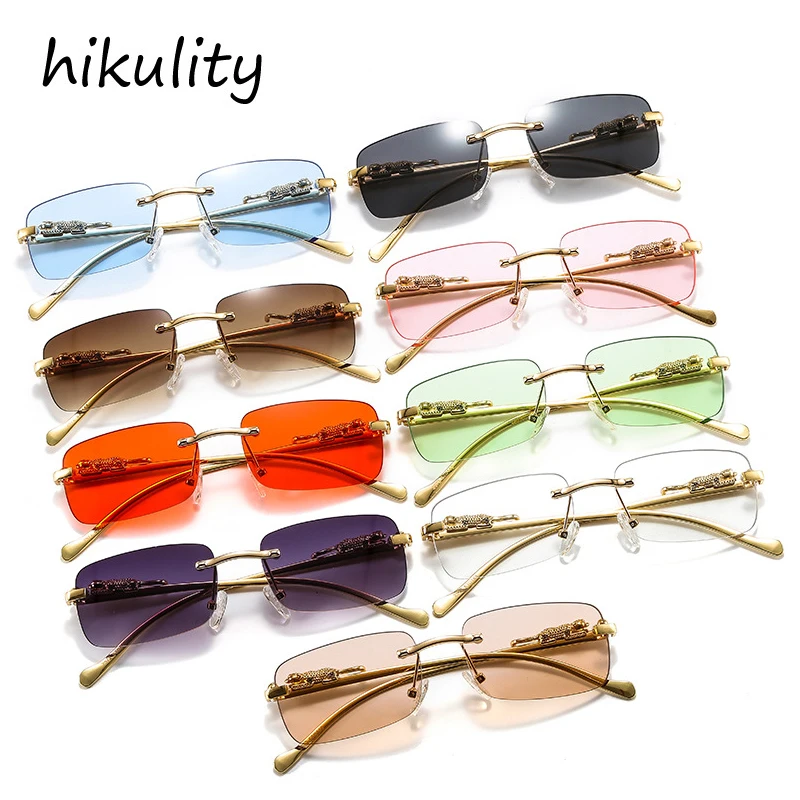 Солнцезащитные очки без оправы с леопардовыми дужками для мужчин и женщин, роскошные брендовые авиаторы из сплава с градиентом и квадратными затемненными линзами Uv400