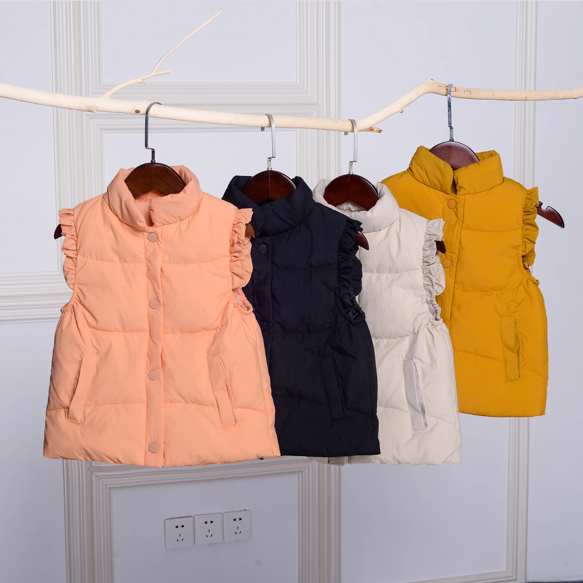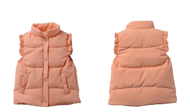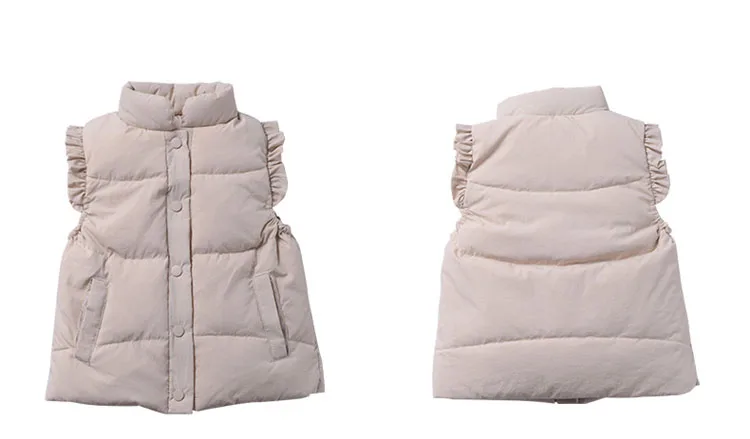 Детский пуховой жилет, осенне-зимнее теплое однотонное пальто карамельного цвета с кружевами для девочек и дошкольников из хлопка, утепленное пальто для детей 3-7 лет