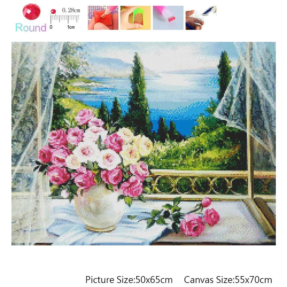 Алмазная живопись с лавандой, вазой, фиолетовыми цветами, круглыми ...
