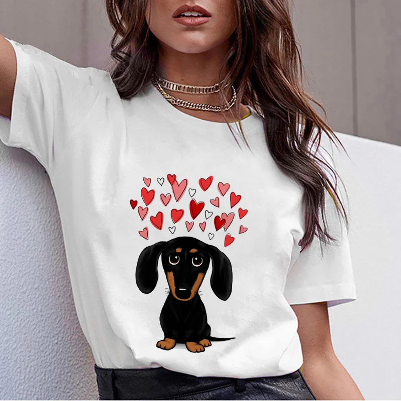 Футболка женская в стиле Харадзюку, смешная Милая собачка с таксой,...