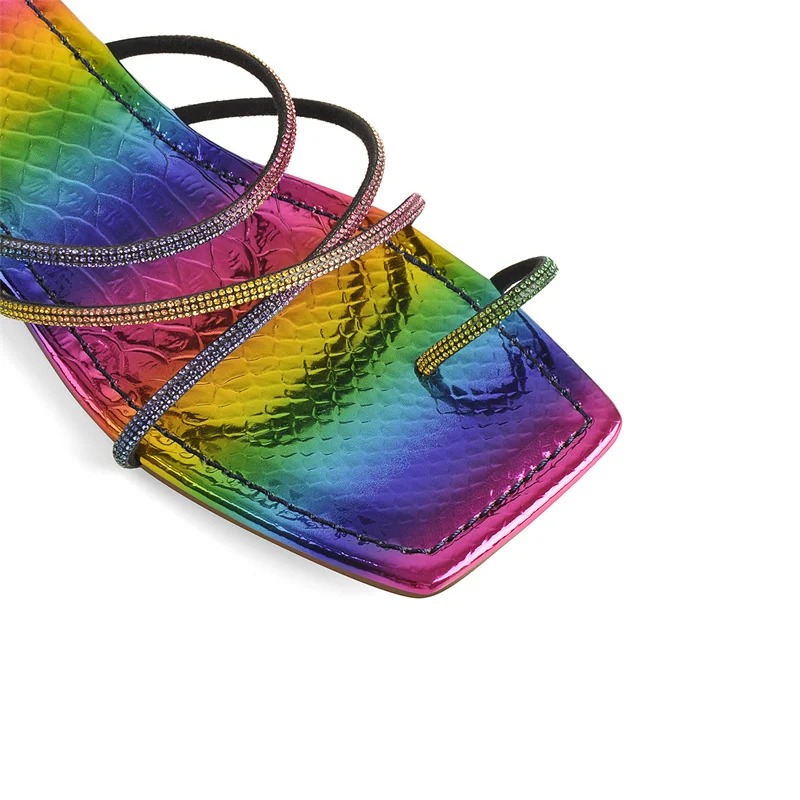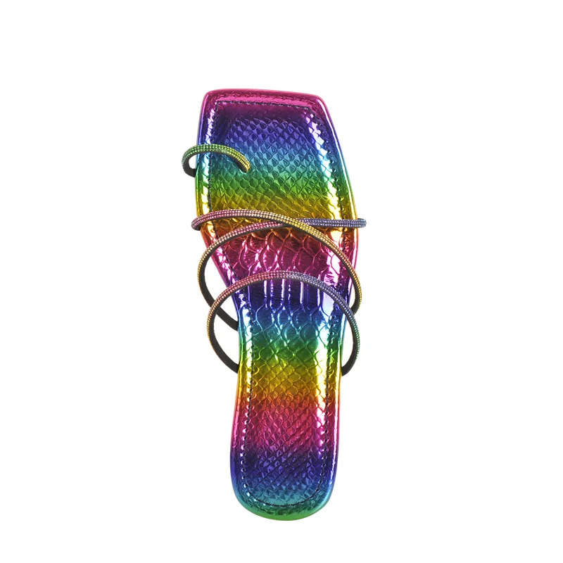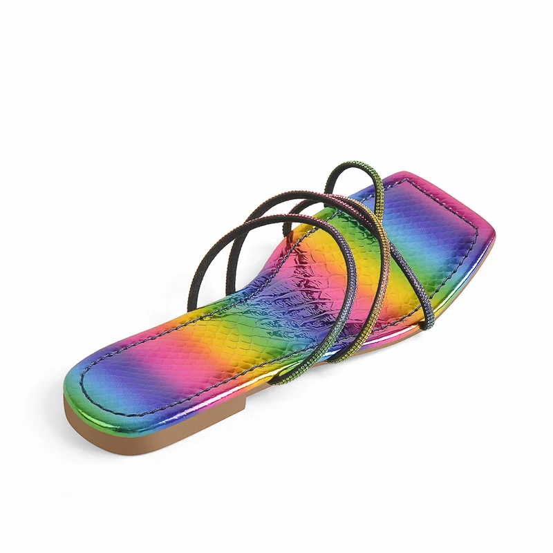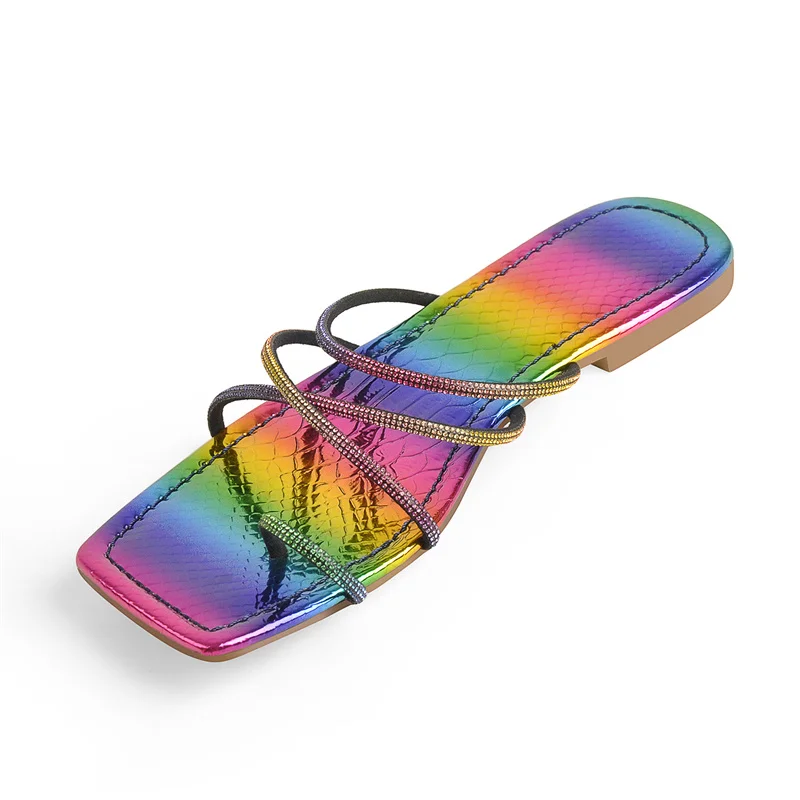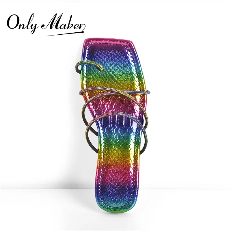 Шлепанцы Onlymaker женские на плоской подошве, лакированная кожа, квадратный носок, Хрустальная удобная обувь с перекрестными ремешками
