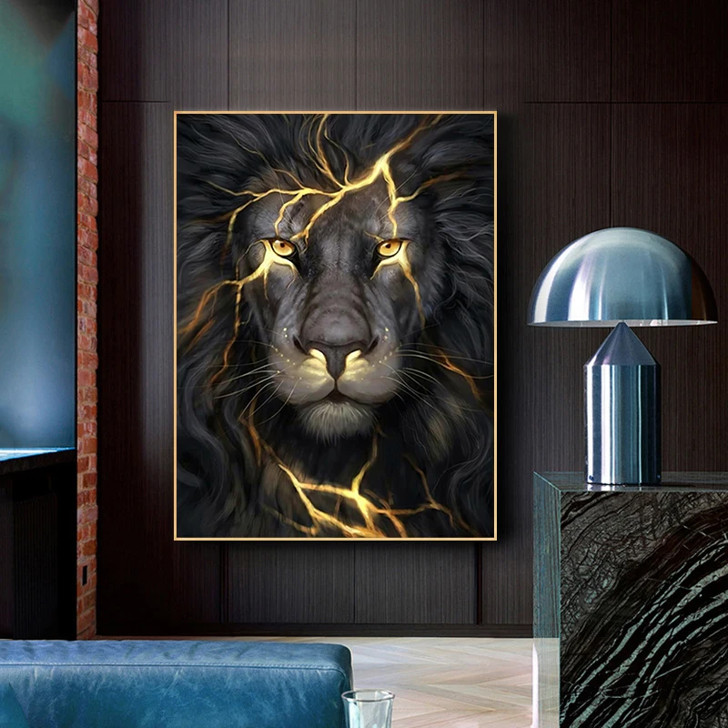 Настенная картина с изображением сильного льва для гостиной, домашн...