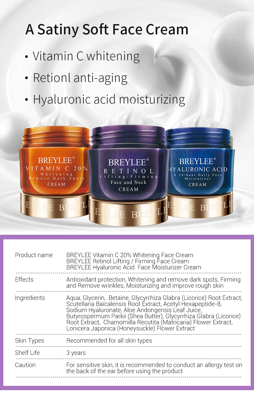 BREYLEE уход за кожей лица крем с гиалуроновой кислотой Увлажняющий дневной крем ретинол увлажняющий крем для лица против морщин и витамин C отбеливающий уход за кожей лечение акне 40g