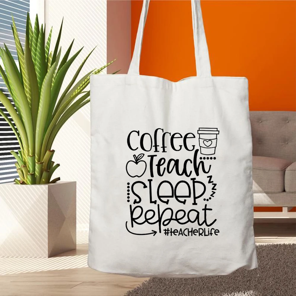 Сумка-тоут из парусины eacher Life, многоразовая женская сумка через плечо с принтом Love, сумка для книг, подарок для учителя, сумочка для покупок, материал: холст