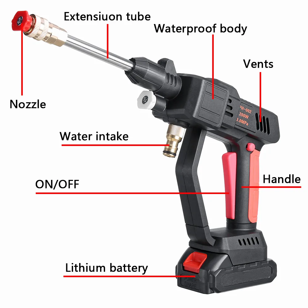 Пистолет для мойки автомобиля, 800 Вт, 25 в, беспроводной, высокого давления, для душа, электрический насос с распылителем