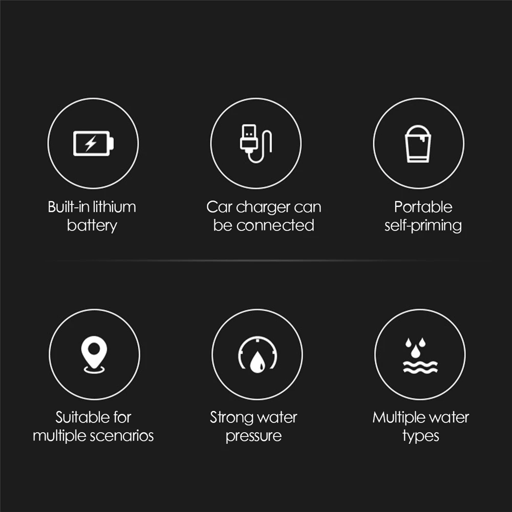 Особенности товара:Цвет: черныйМощность: 800 ВтРасход воды: 3 л/минРазмер: 40x22 см/15,75x8,66 дюймаМатериал: АБС-пластик + нержавеющая стальВыходное давление: 3 МПа/435PSIЕмкость аккумулятора: 2000 мАчСкорость: 10000-20000 ОБ/минНапряжение зарядного устройства: 100-240 В переменного тока, ГцДлина водопроводной трубы: 5 метров/16,4 футаПолезная температура подачи воды: 5-50 °C