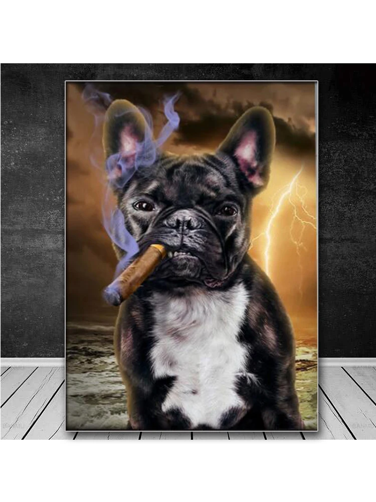 Картина 5D стразы из страз сделай сам с французским бульдогом курительной сигарой, вышивка крестиком, 3d фигурка, украшение для дома