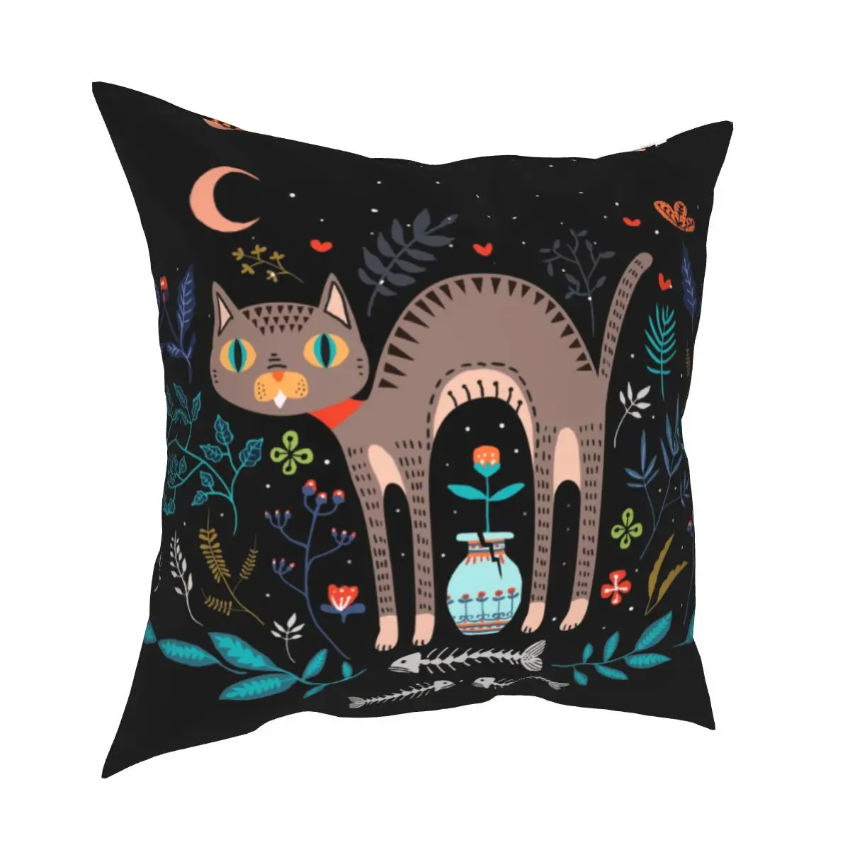 Чехол для подушки с изображением цветов и кошек ночью, декоративный чехол для подушки, милый чехол для подушки с изображением котенка, животного, домашний чехол для подушки, оптовая продажа, 40x40 см