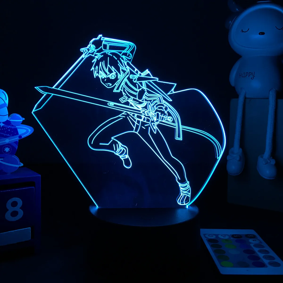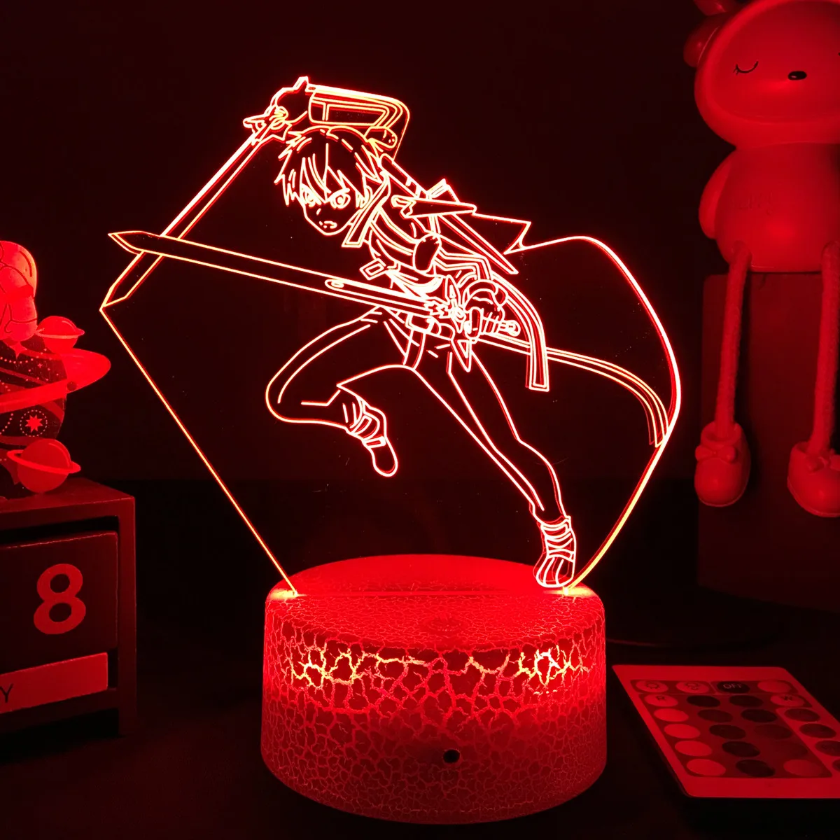 Светодиодный ночсветильник с изображением аниме меча онлайн, украшение для детской спальни, детский ночсветильник, фигурка Кирито, подарок на день рождения, прикроватная лампа для манги